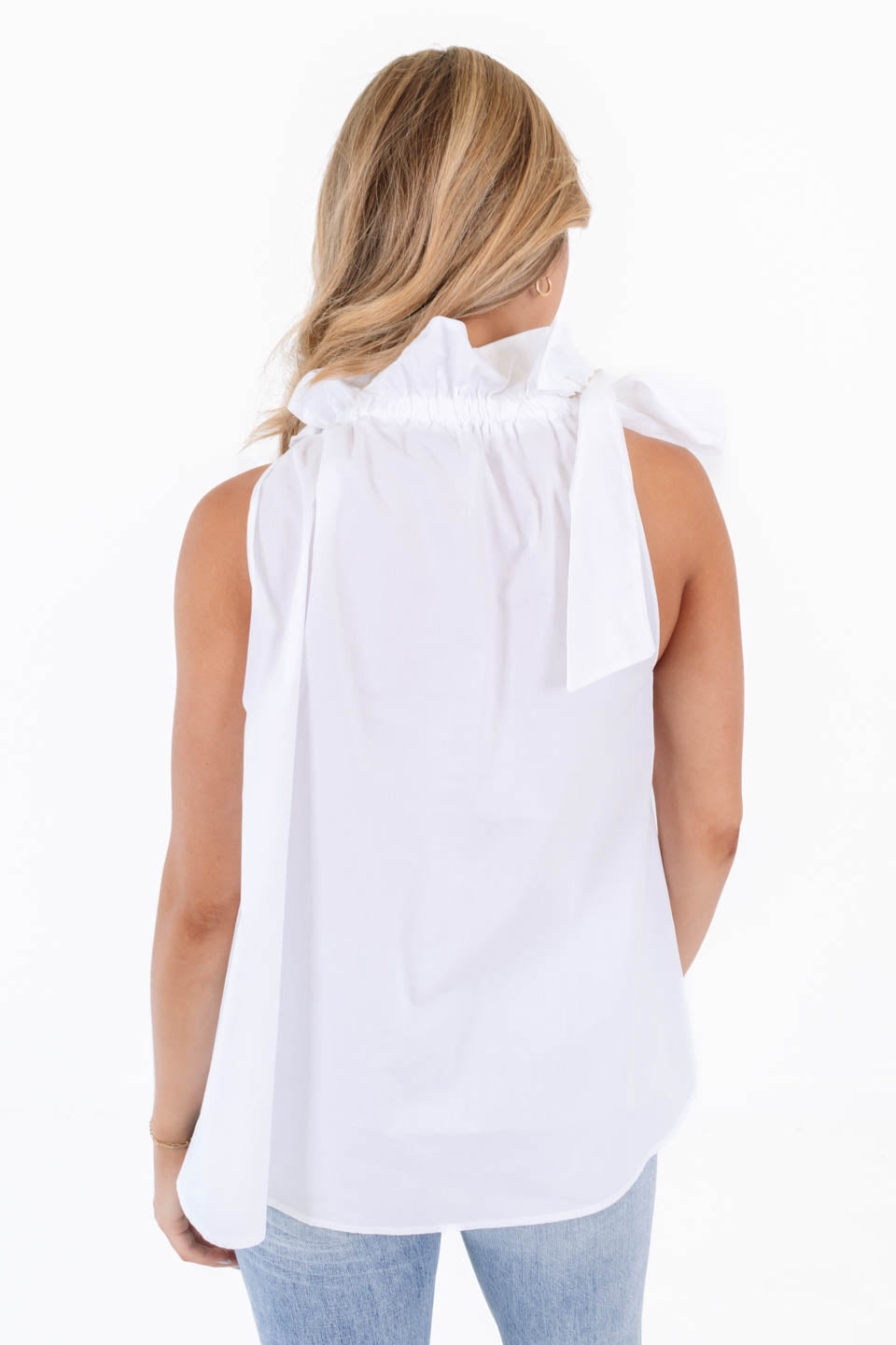 This flirty white top is giving all the summer vibes with its flowy fit and playful shoulder tie. The subtle textured stripes add just the right touch of detail to keep things interesting. Pair it with jeans and you're ready for brunch, a beach stroll, or just feeling fabulous!