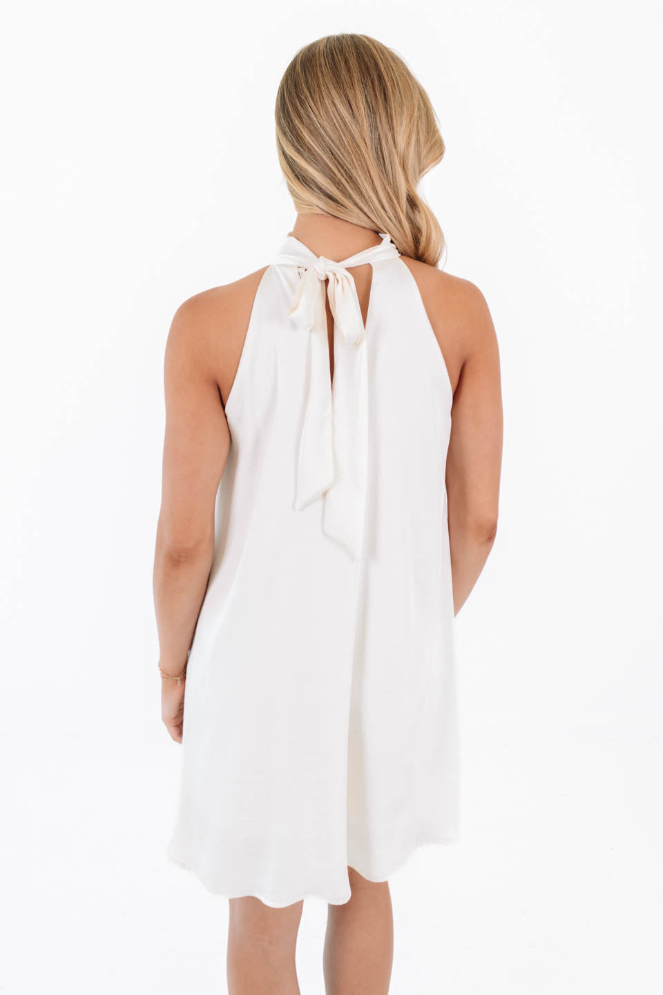 This little white dress is the definition of simple elegance with a flirty twist. Its high neckline and breezy silhouette make it perfect for sunny days and spontaneous adventures. Dress it up with heels or keep it casual with sandals—either way, it's a total vibe.