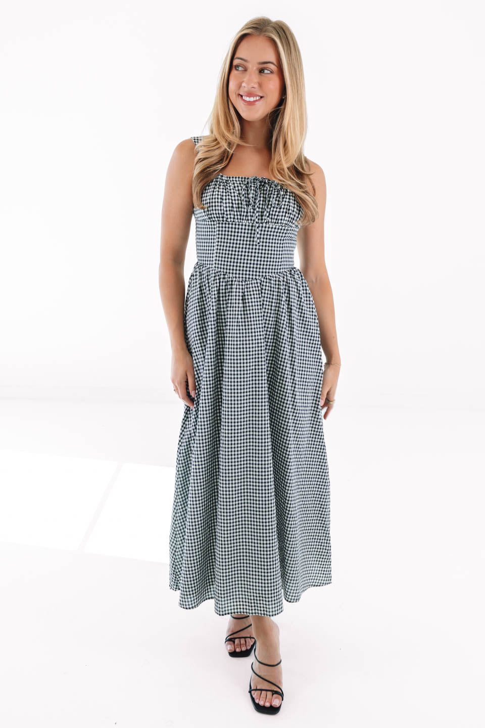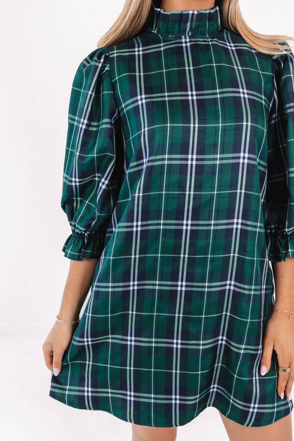 The Jordyn Long Sleeve Bow Dress - Green Plaid