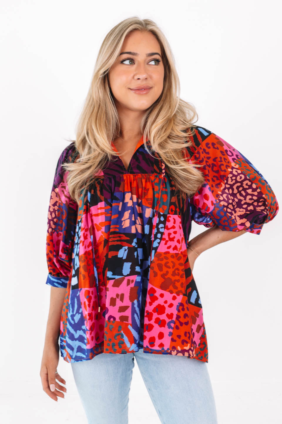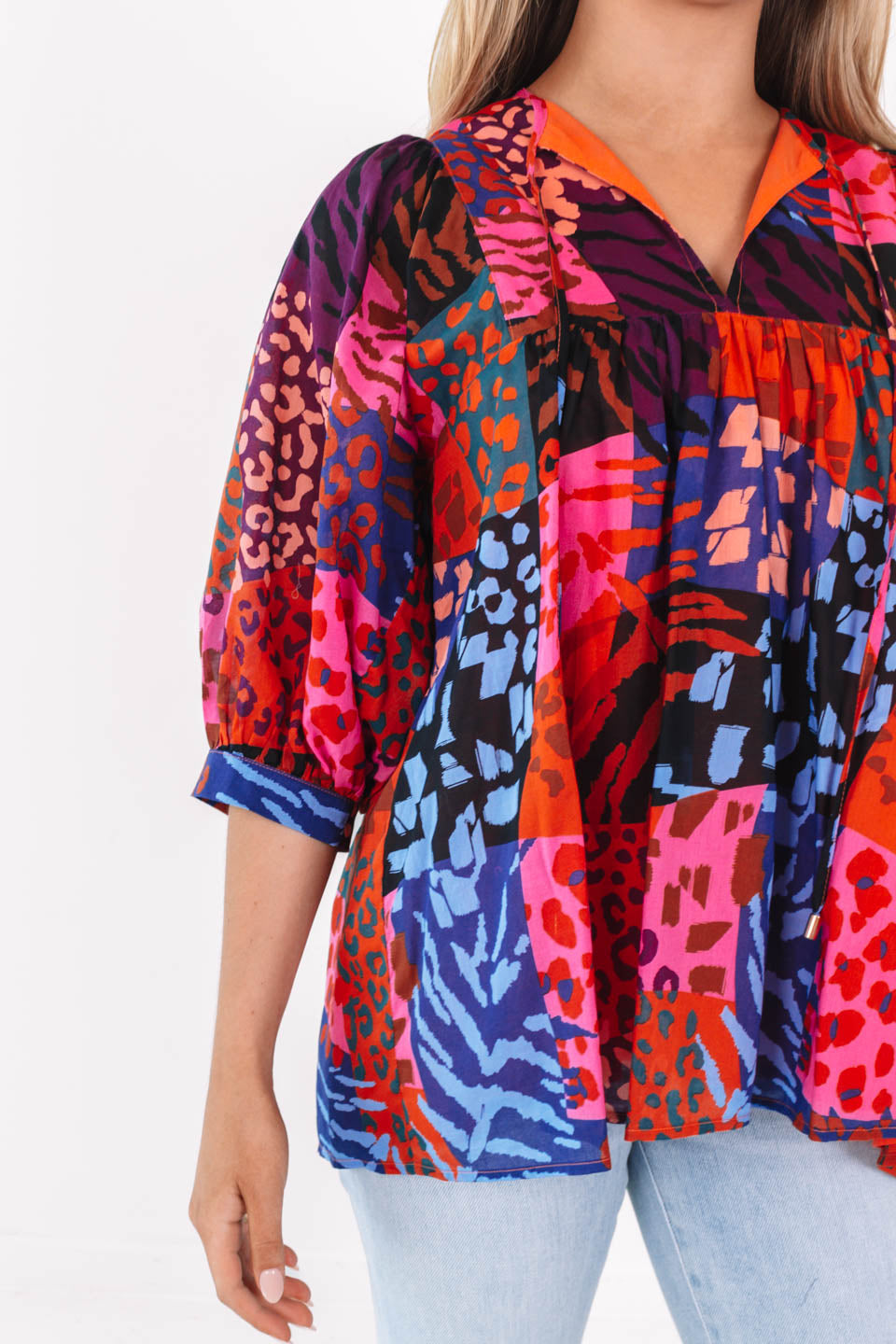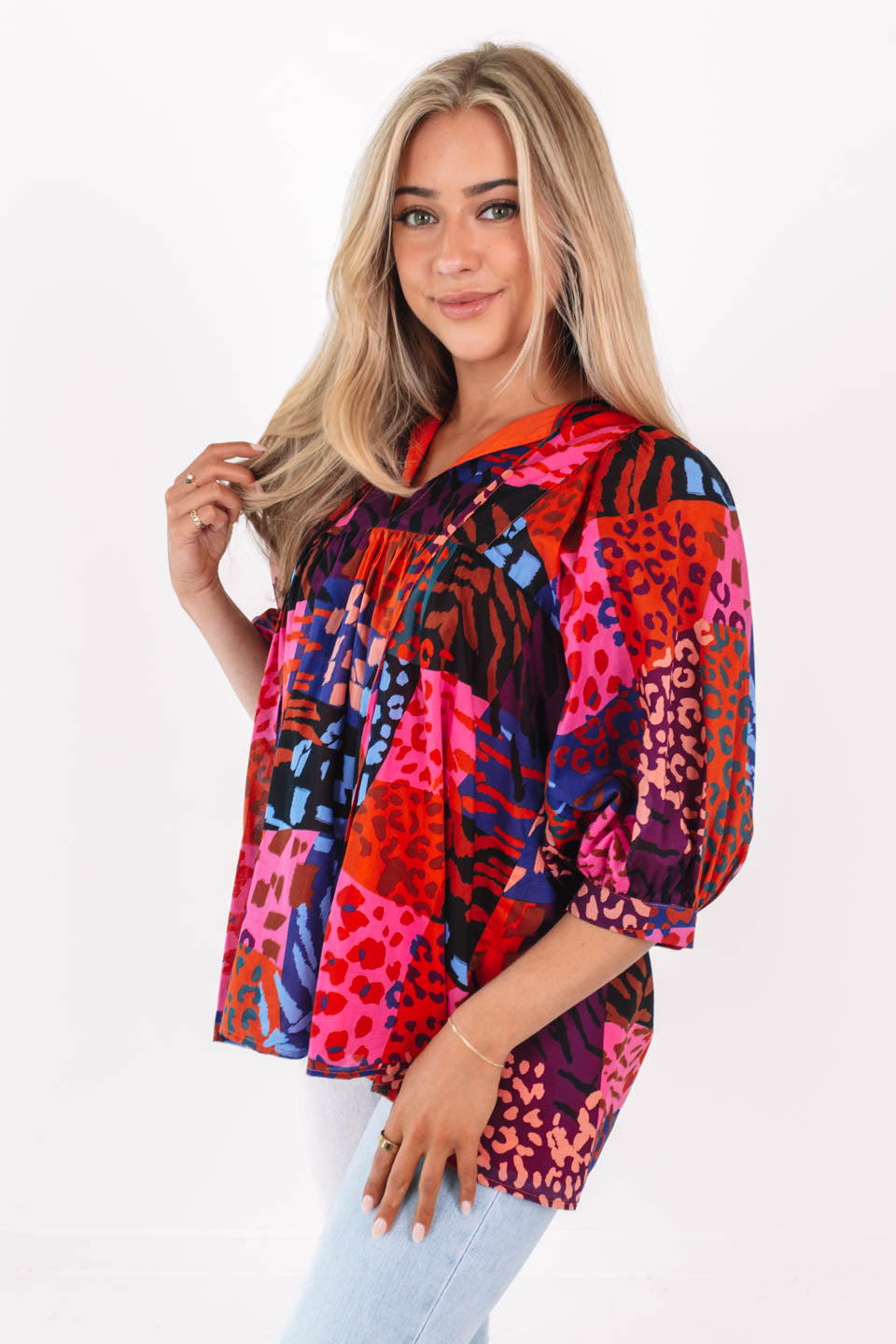 The Hollin Long Sleeve Bow Top - Red Plaid
