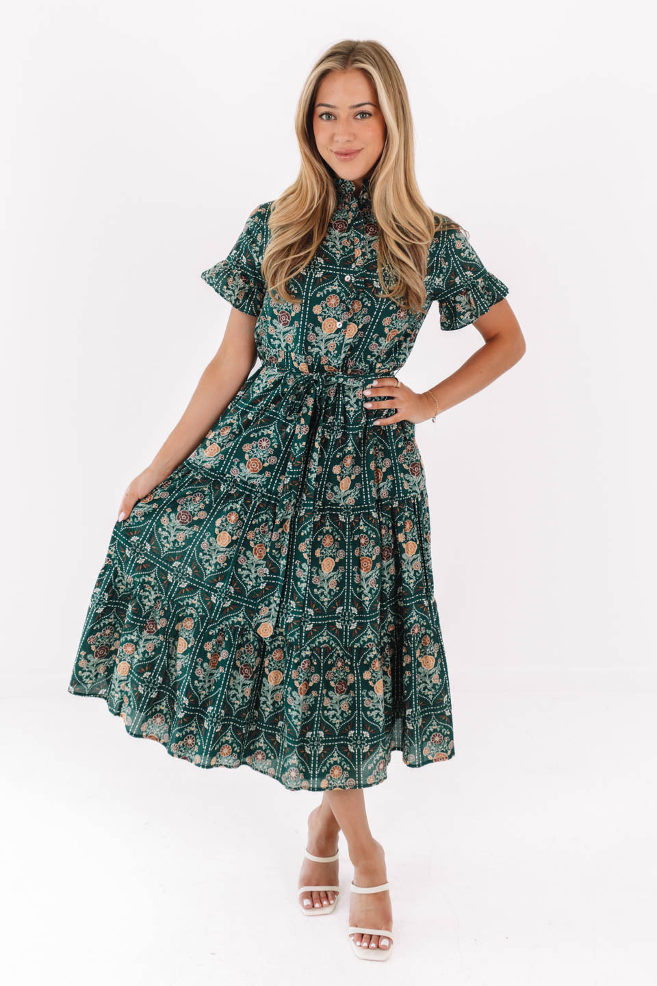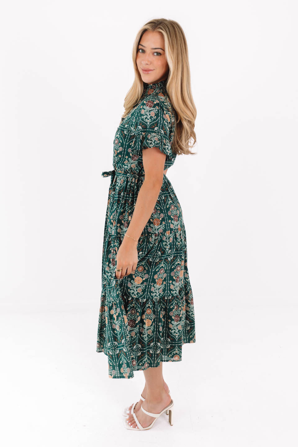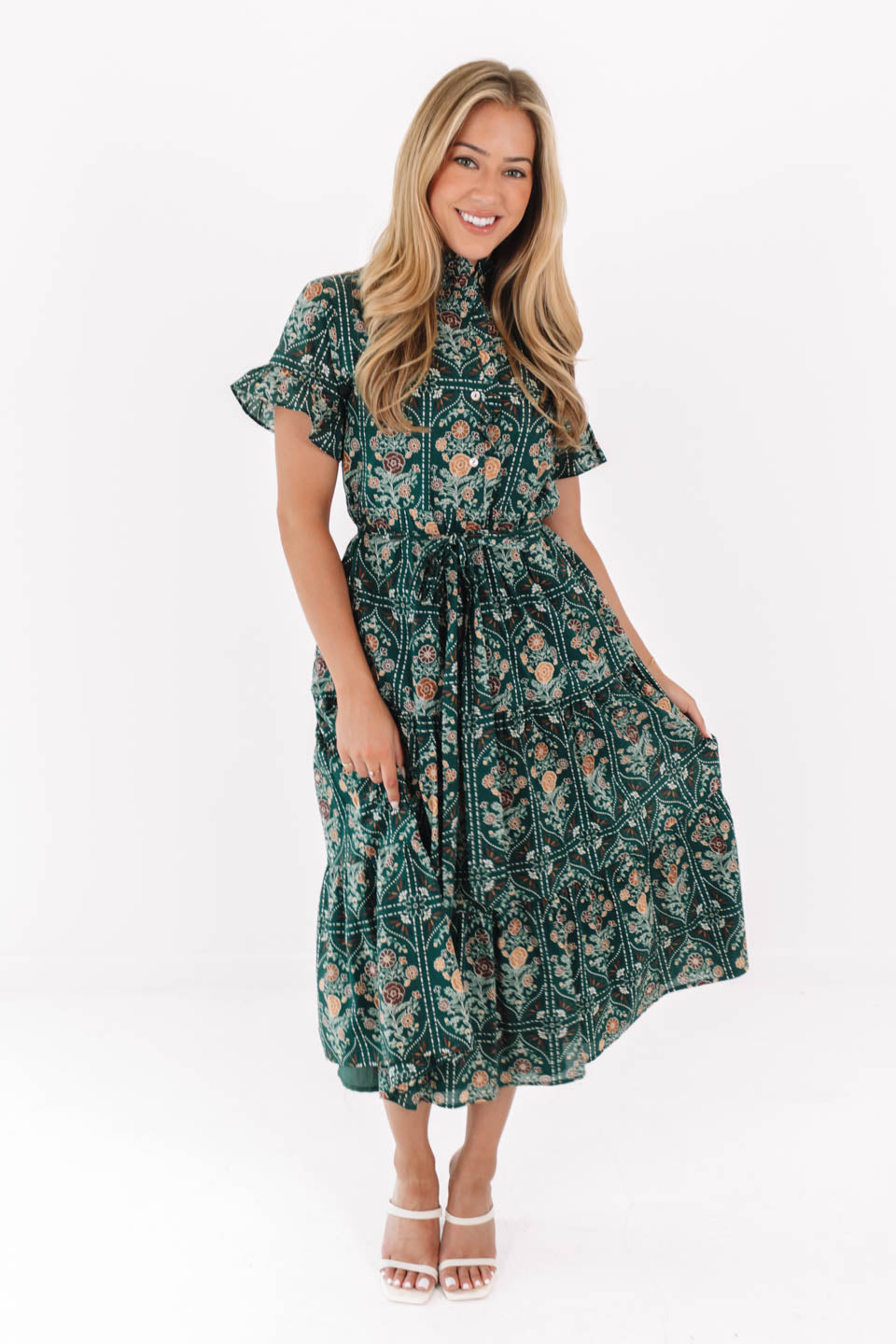 The Hazel Belted Button Up Midi Dress - Hunter Green