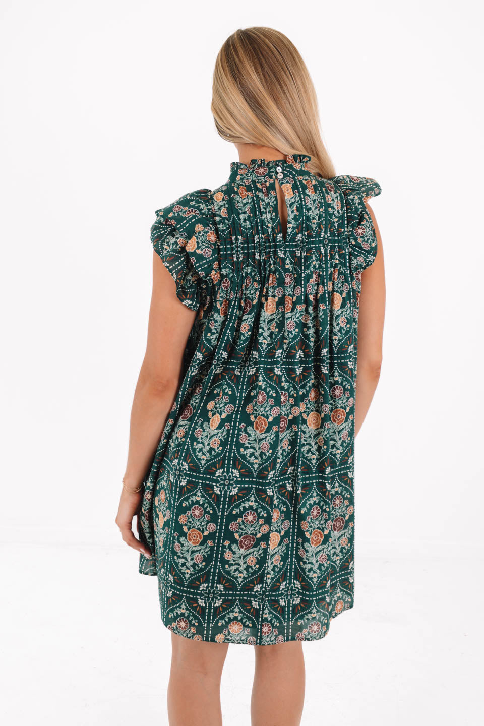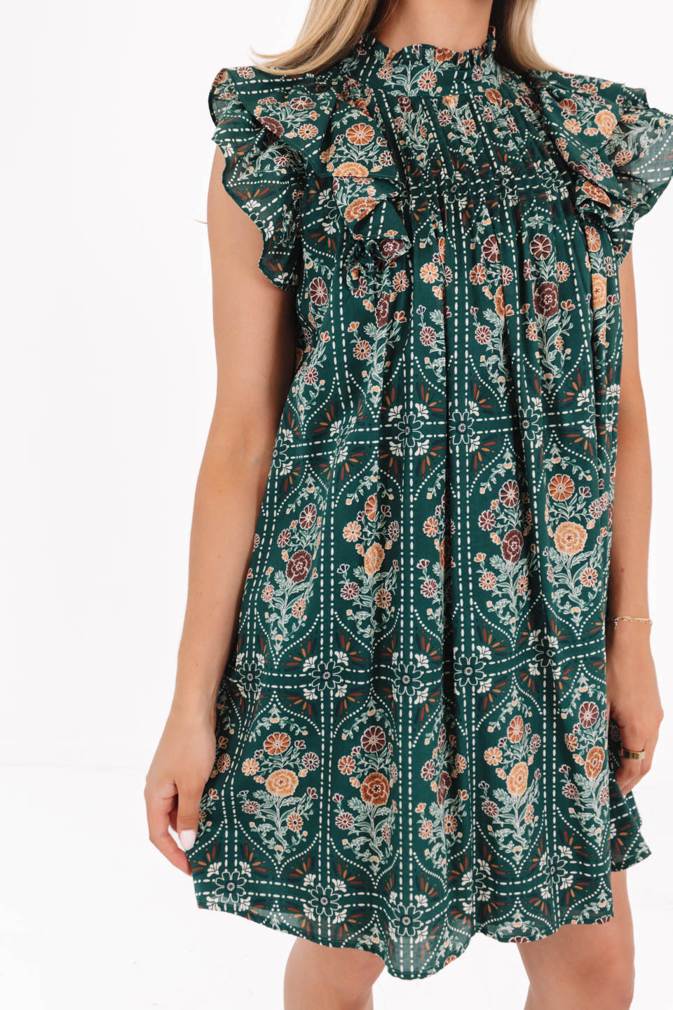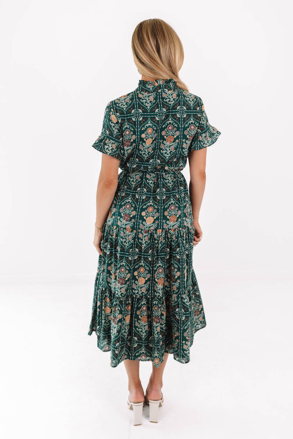 The Hazel Long Sleeve Tie Dress - Hunter Green