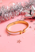 This bracelet is the perfect pop of color to brighten up any outfit! With its vibrant white band and sleek gold "H" clasp, it exudes both luxury and playfulness. Slip this on, and let your wrist do the talking!