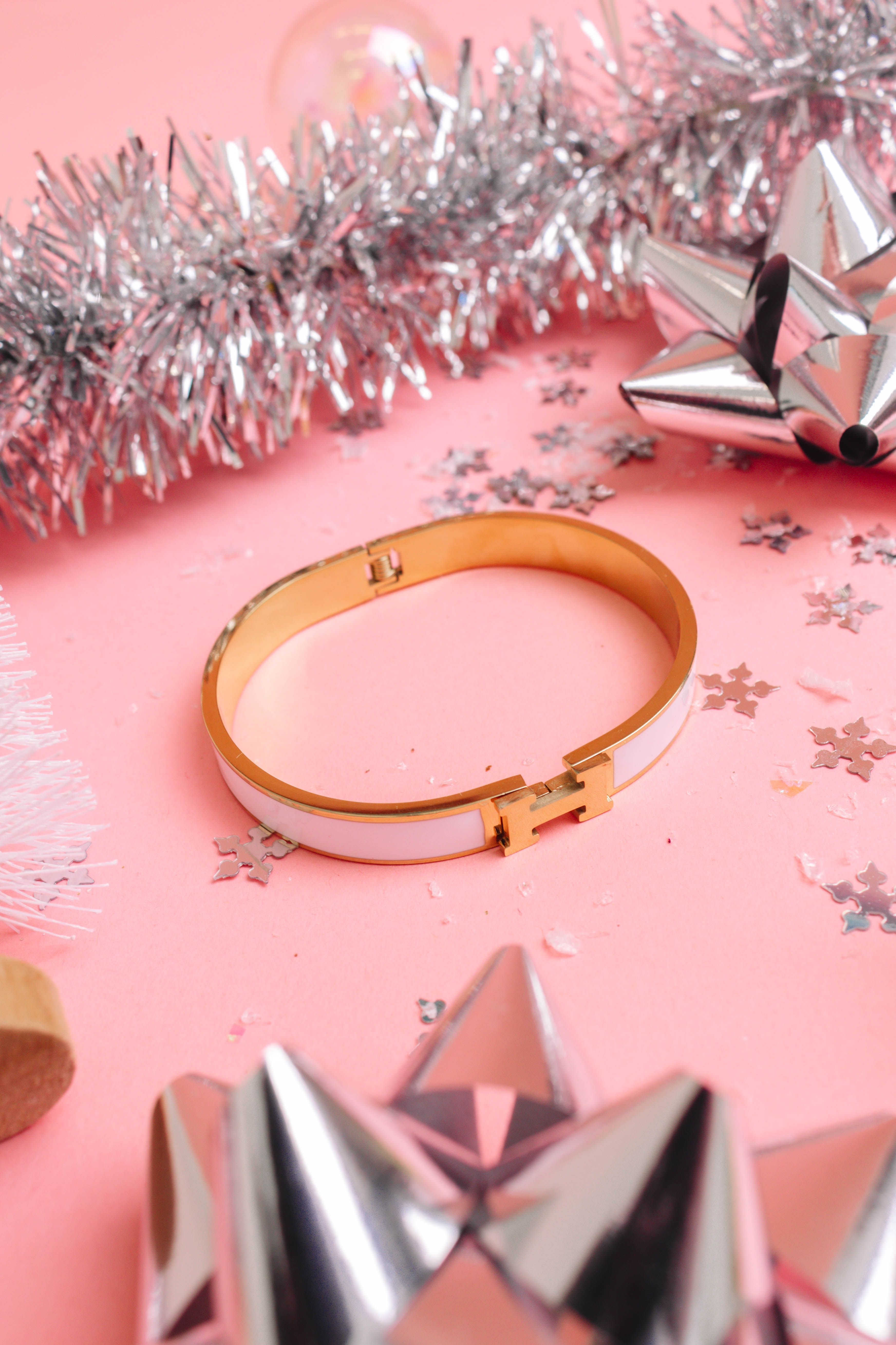- Gold and white bangle bracelet