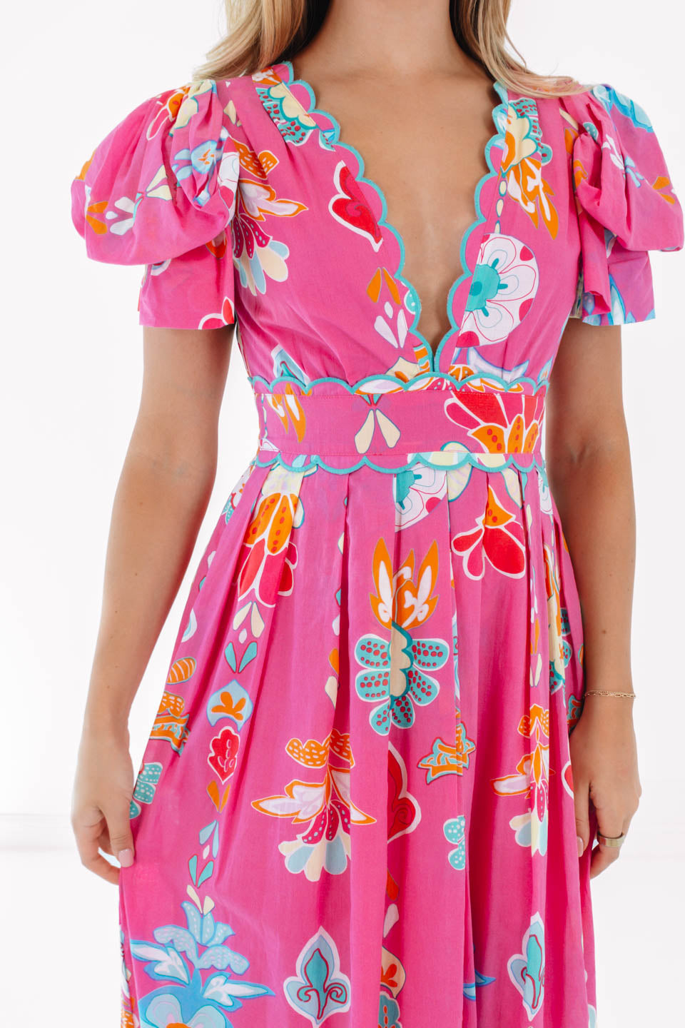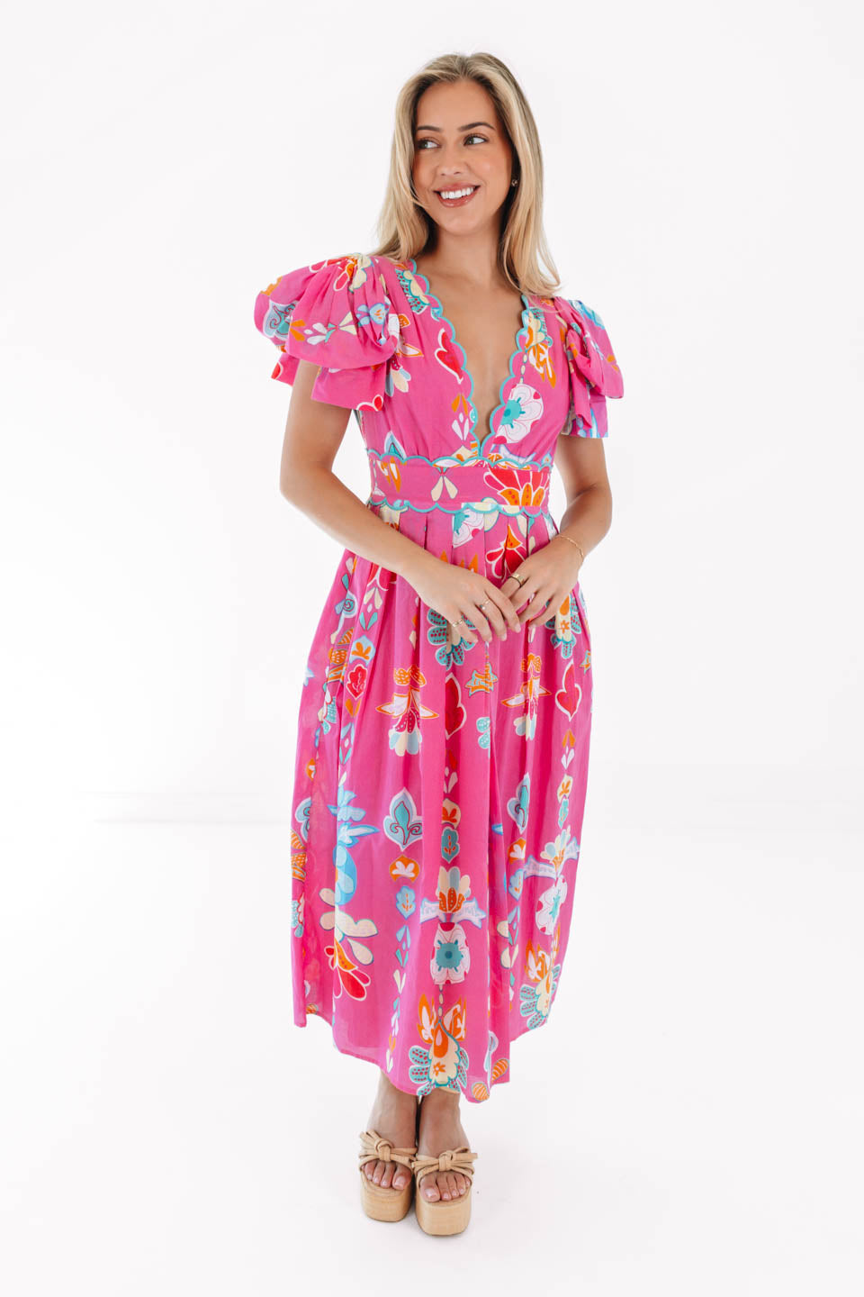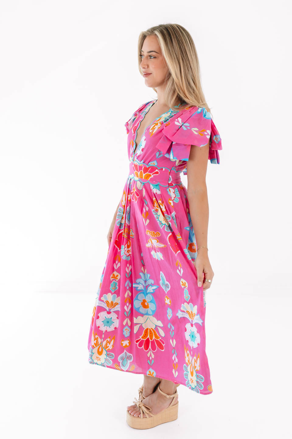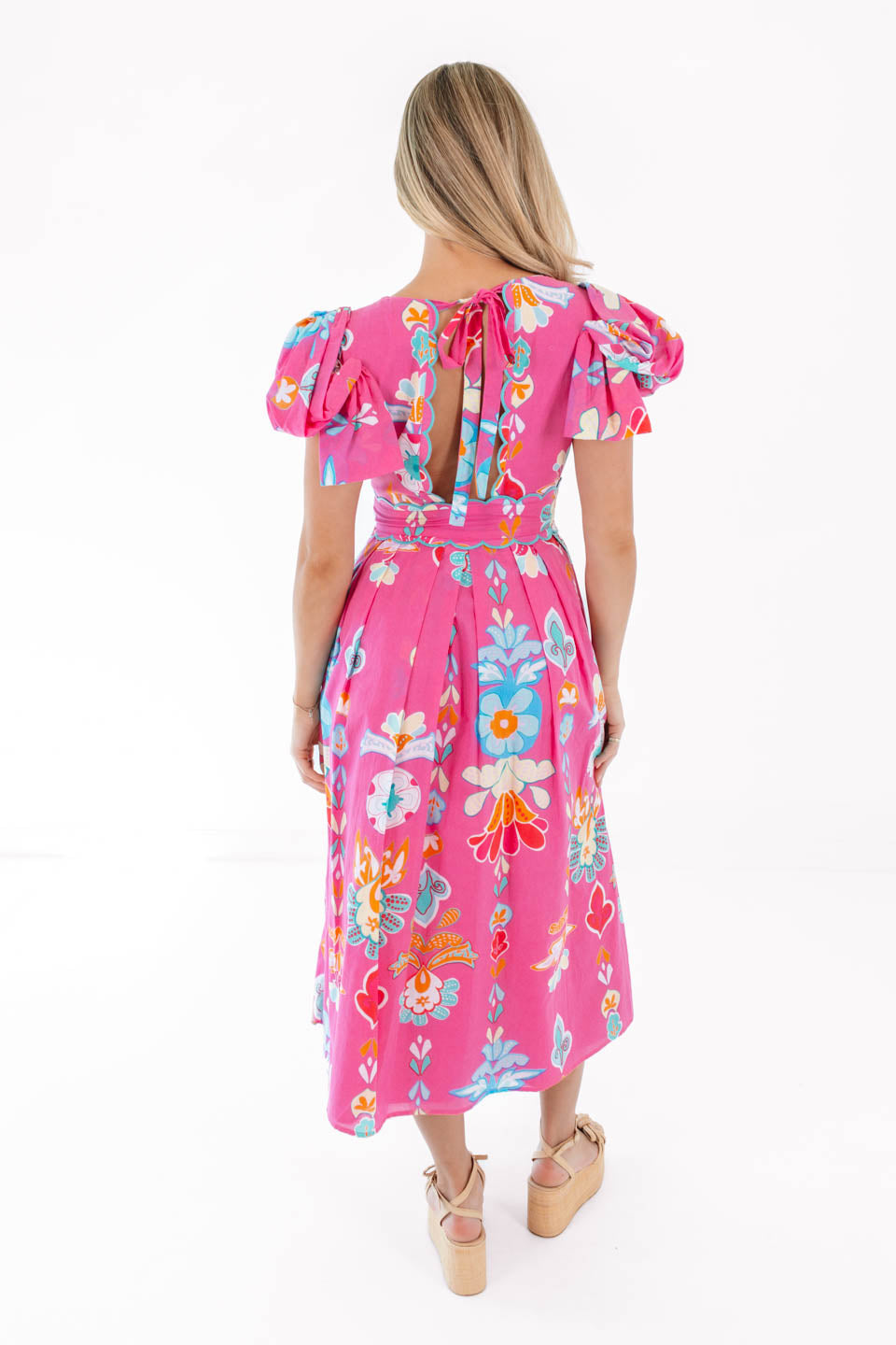 PREORDER The Sailor Bow Sleeve Midi Dress - Hot Pink