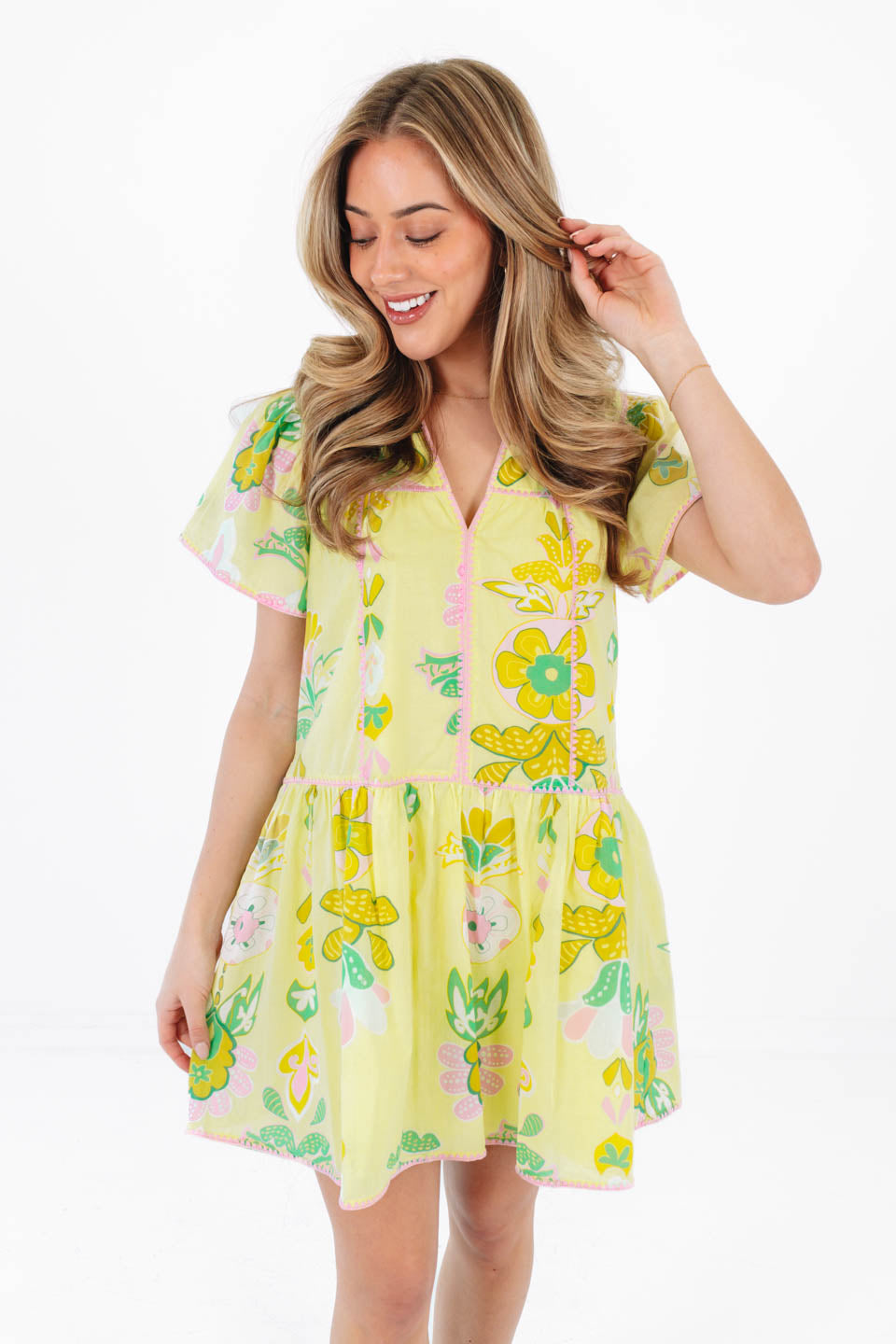 The Rainey V-Neck Dress - Lime