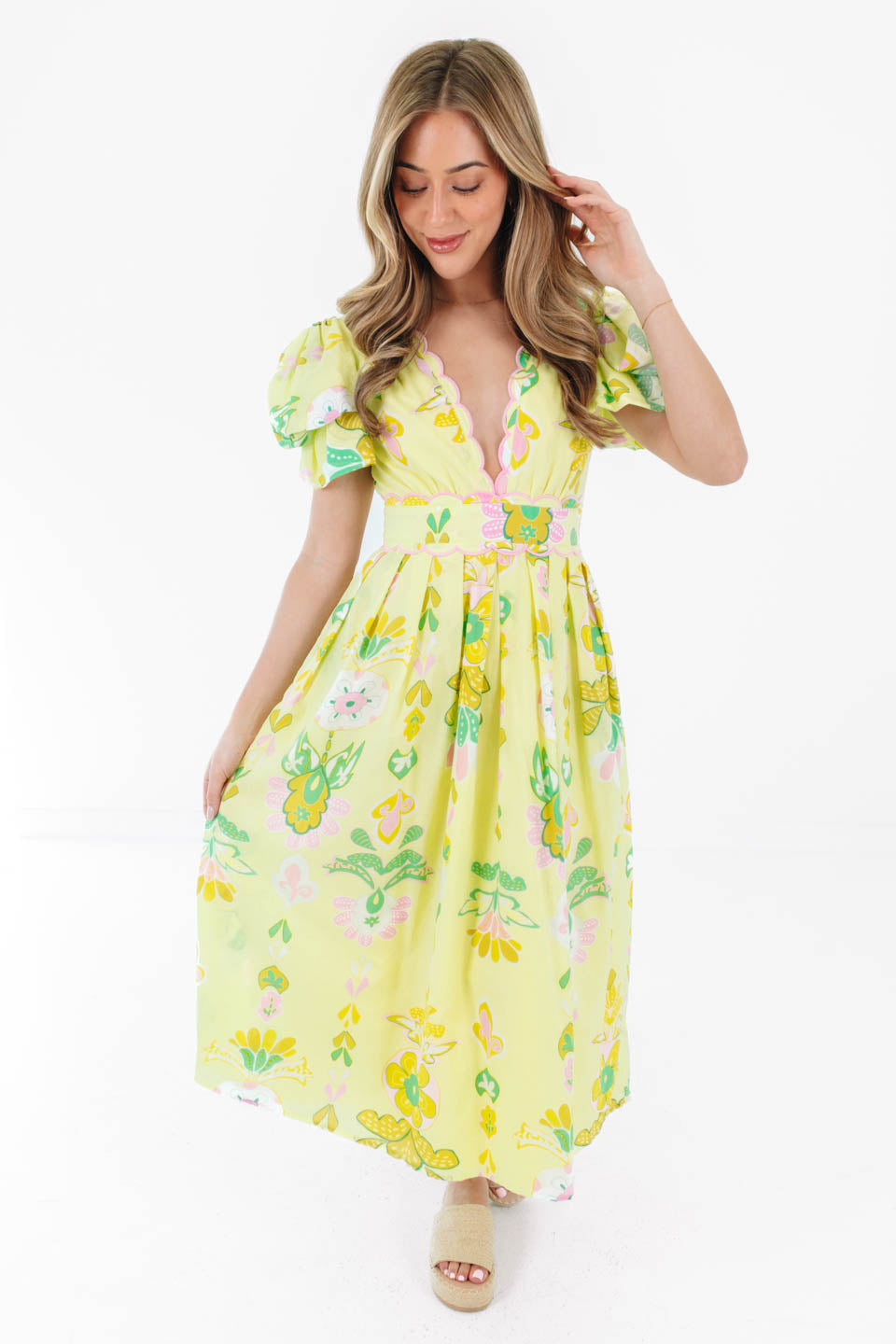PREORDER The Rainey Bow Sleeve Midi Dress - Lime