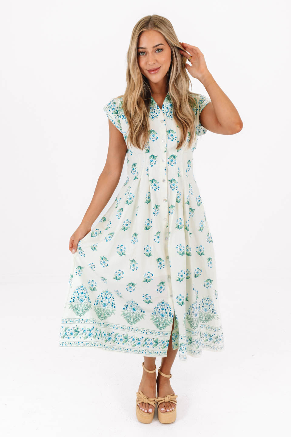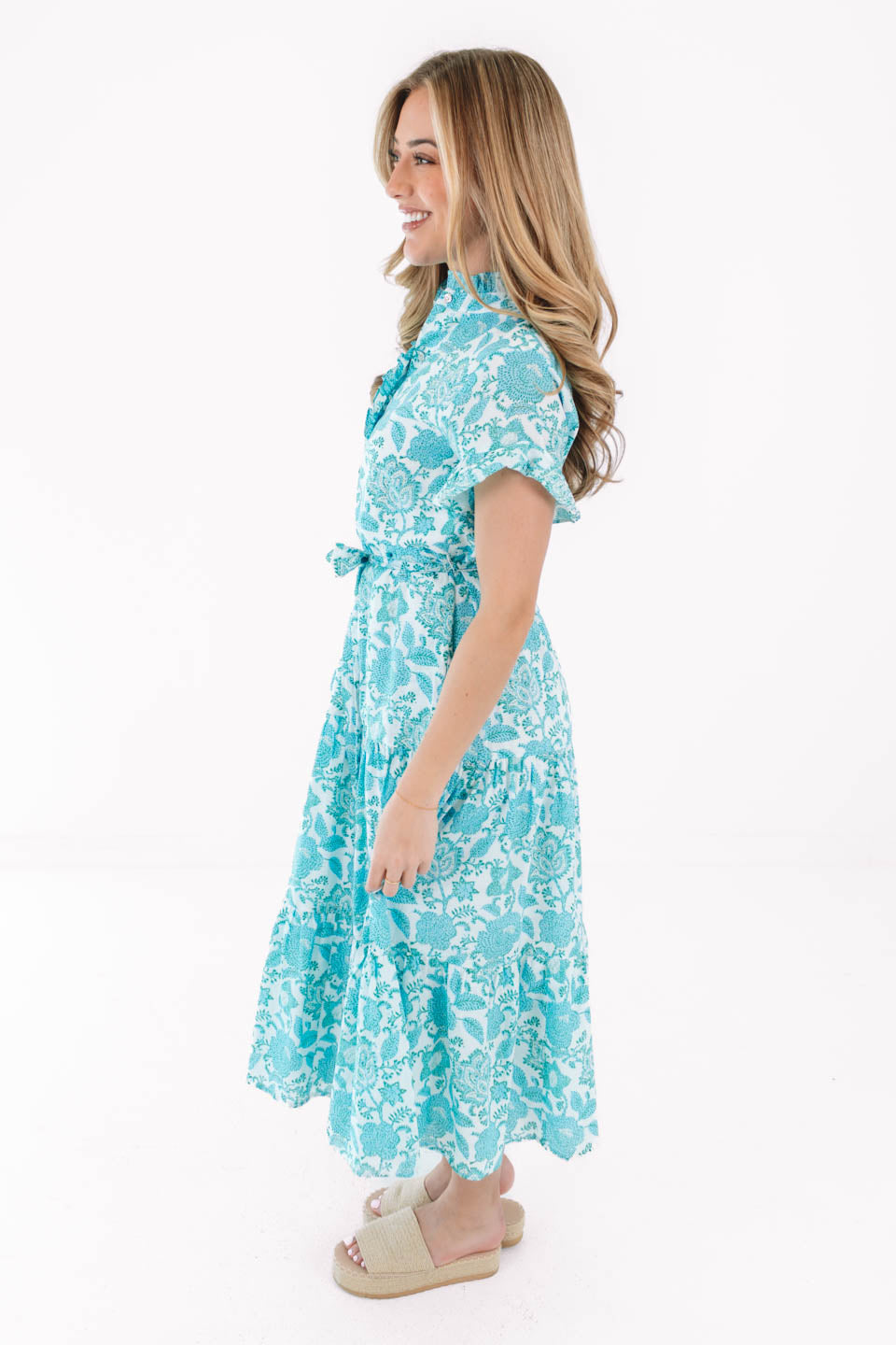 The Nina Button Up Midi Dress - Teal
