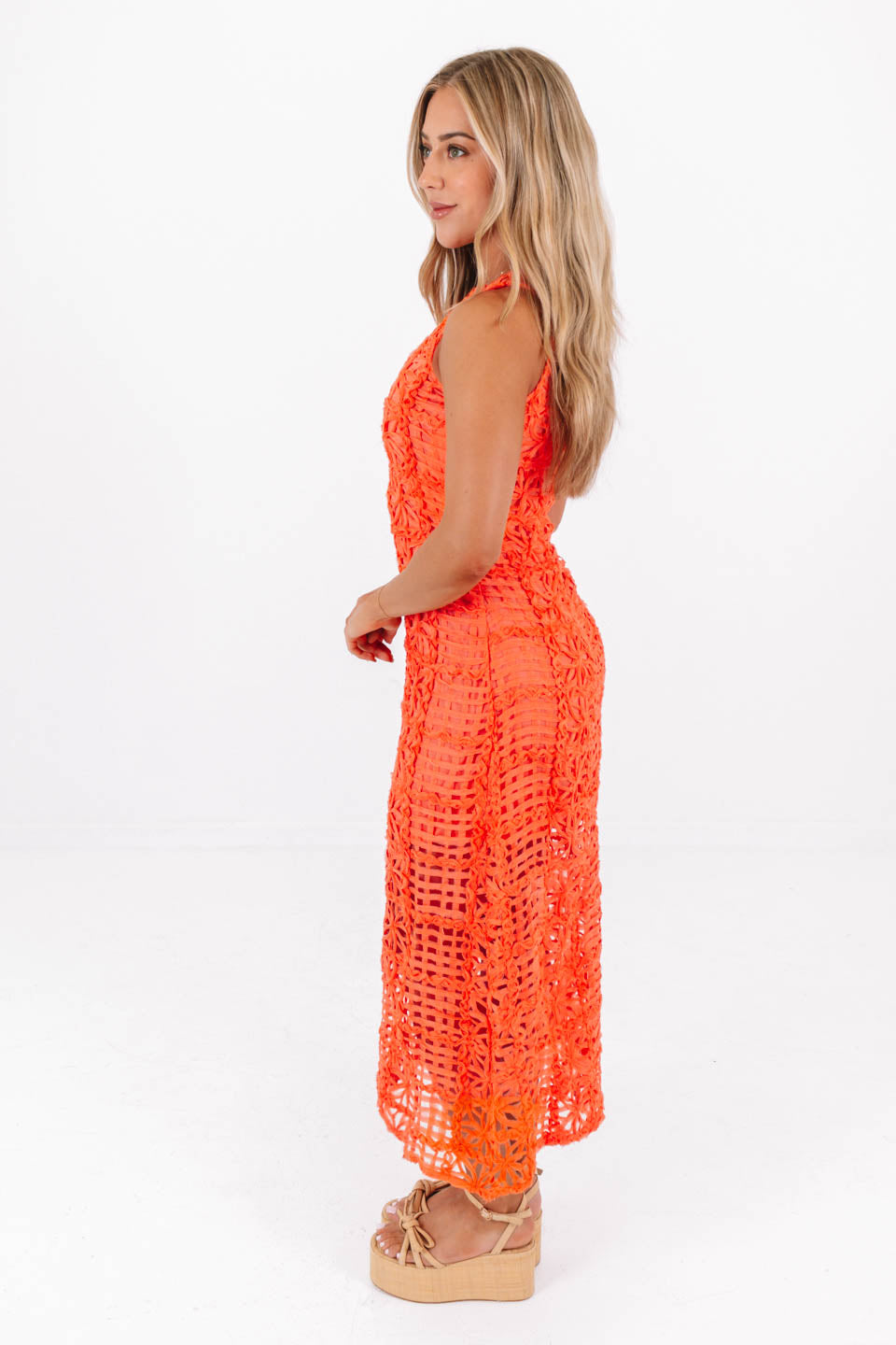 Coral Cutie Midi Dress - Orange
