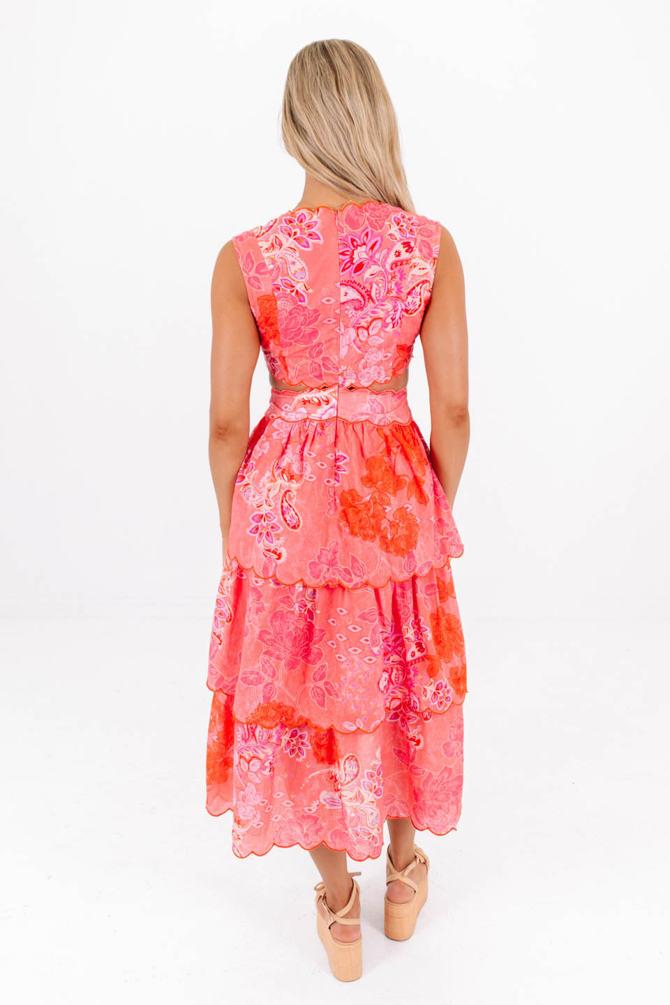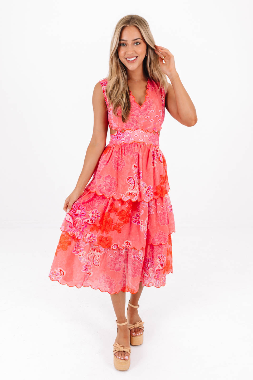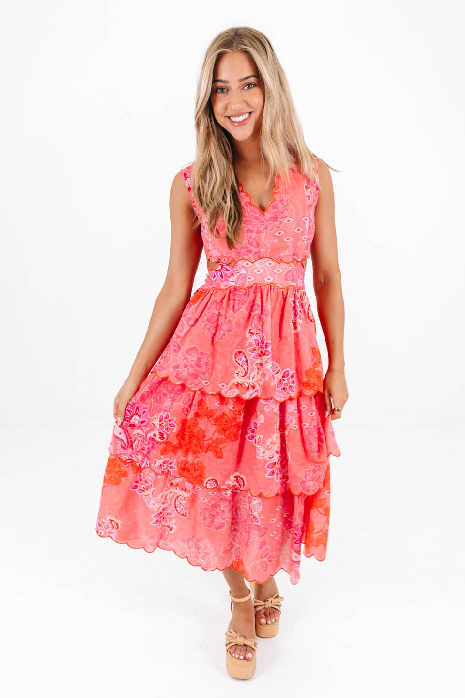 Coral Craze Midi Dress - Pink