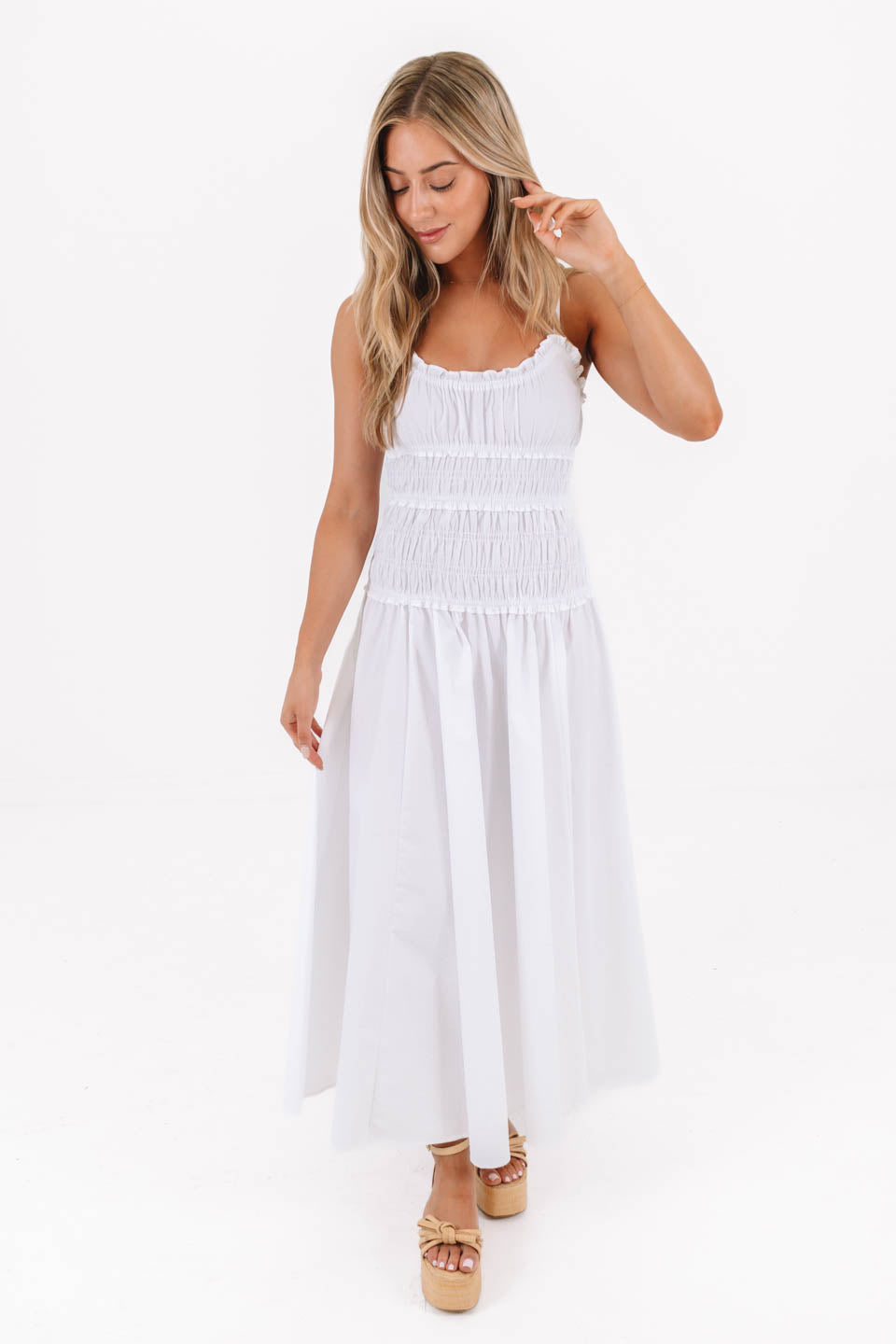 Staying In Seaside Midi Dress - White