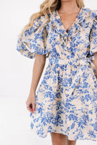 This charming blue-and-white mini dress is like stepping into a vintage porcelain painting, with its delicate floral print and romantic ruffled details. The voluminous puff sleeves add a dramatic yet playful touch, making every movement feel effortlessly chic. Whether you're off to a garden tea party or just want to turn heads on a casual stroll, this dress is pure perfection!