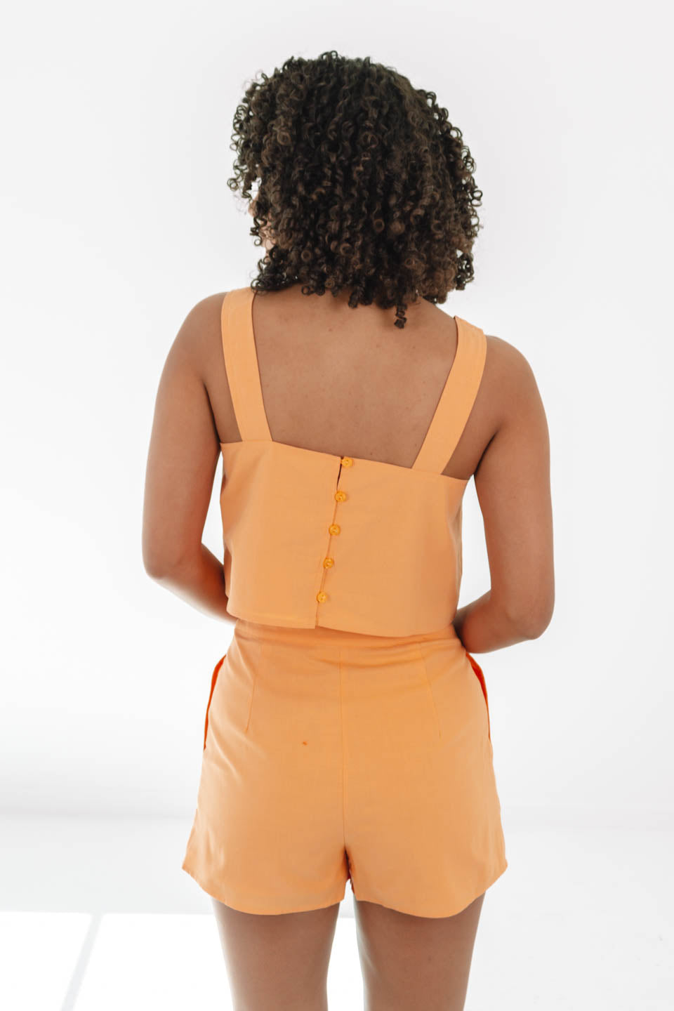 Turn heads in this vibrant orange crop top that’s all about bold, confident style! With its sleek, minimalist design, it pairs perfectly with our matching shorts or your favorite jeans, making it a go-to for any sunny day out or night time celebration.