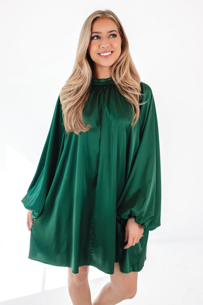 The Zanna Long Sleeve Tie Dress - Green Plaid