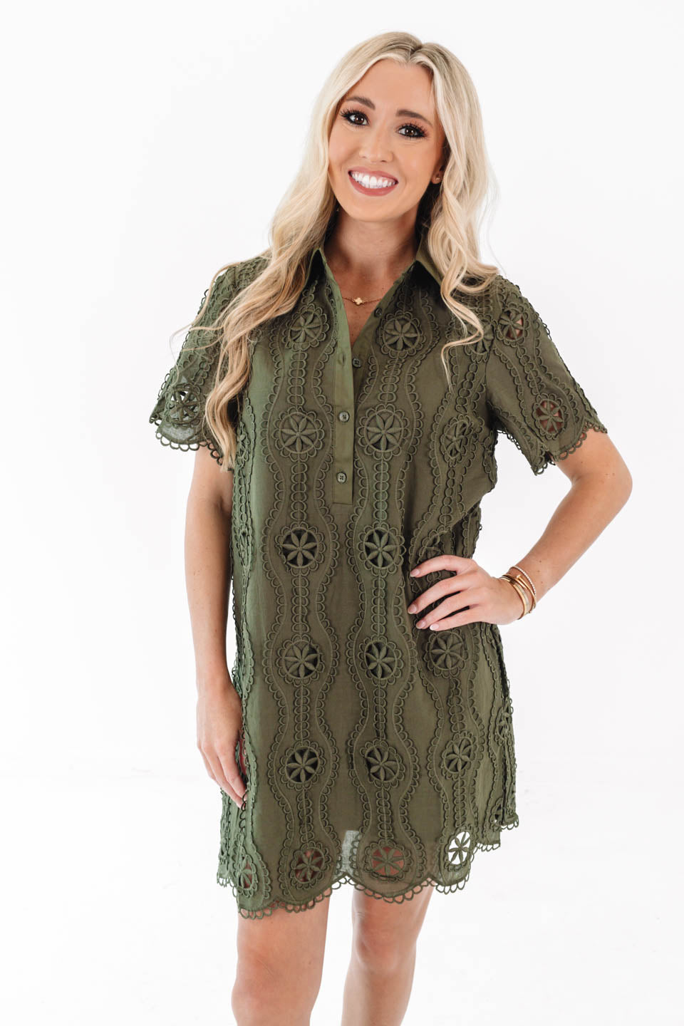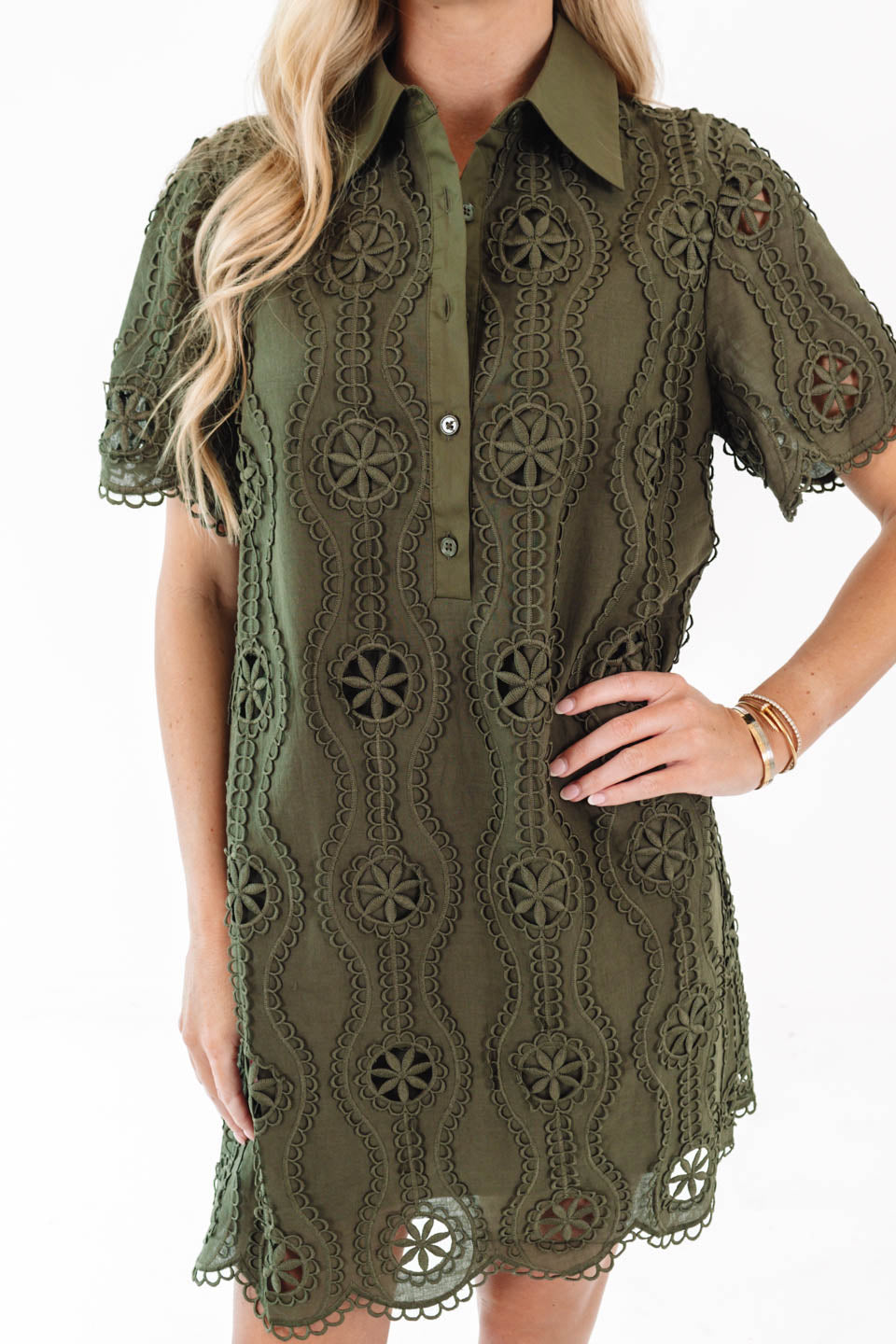 The Hazel Belted Button Up Midi Dress - Hunter Green
