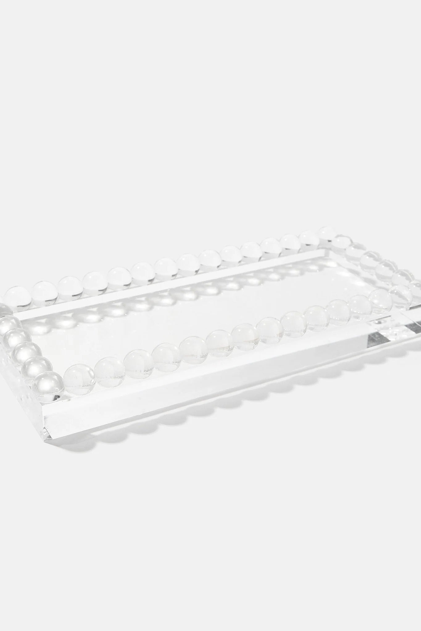 Add a touch of charm and function to your space with our Bubble Lucite Tray, designed to hold dinner napkins in style. The clear acrylic and playful bubble edging make it a perfect accent for bathrooms, powder rooms, or hosting setups. Beyond napkins, it’s just the right size to display a soap and lotion duo, your favorite perfumes, or other countertop essentials. Both practical and chic, this tray keeps everything organized while elevating any space.