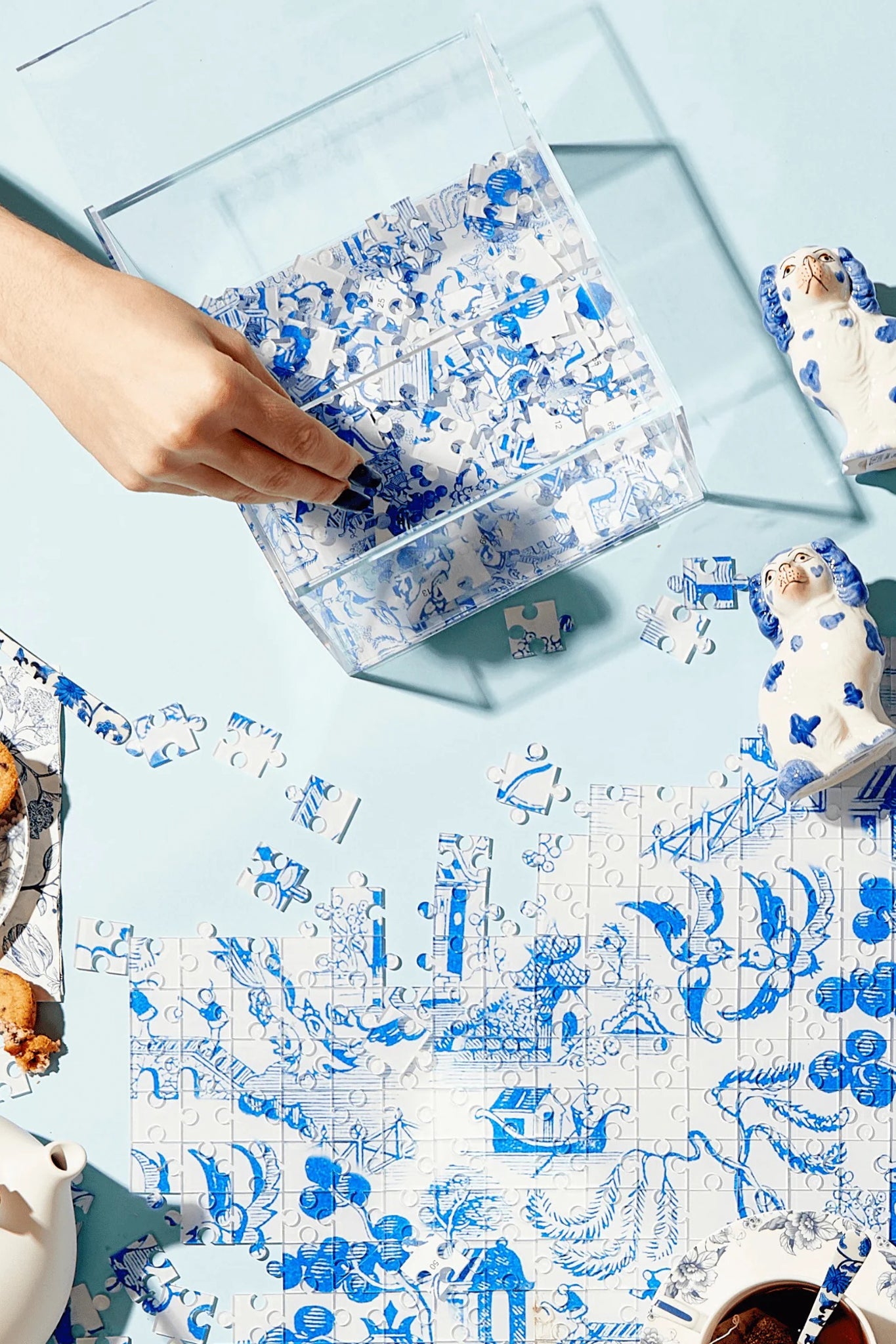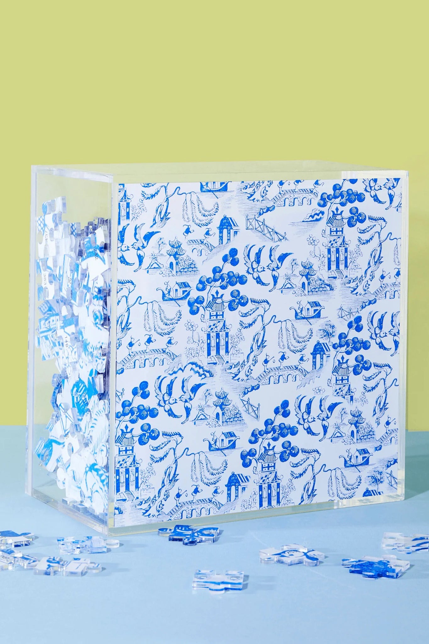Piece together beauty and fun with our Chinoiserie Acrylic Puzzle. This chic puzzle comes in a matching acrylic display box, making it a unique addition to any room. With a stunning blue and white design, it's the perfect way to unwind and add a touch of flutter to your day.