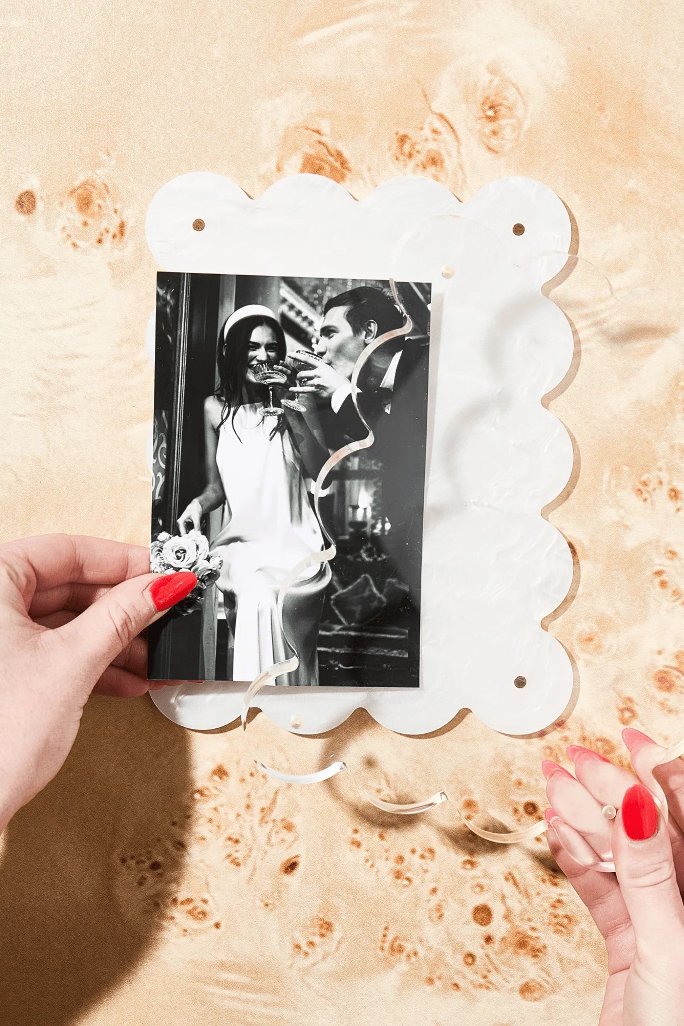 Display your favorite photos in style with this acrylic picture frame! It features a magnetic border to securely hold your cherished pictures as well as adding a stylish touch. Perfect for giving your home a fun and unique look! The magnets are strong enough to hold various items like tickets, invitations or dried flowers, making for the perfect keepsake!