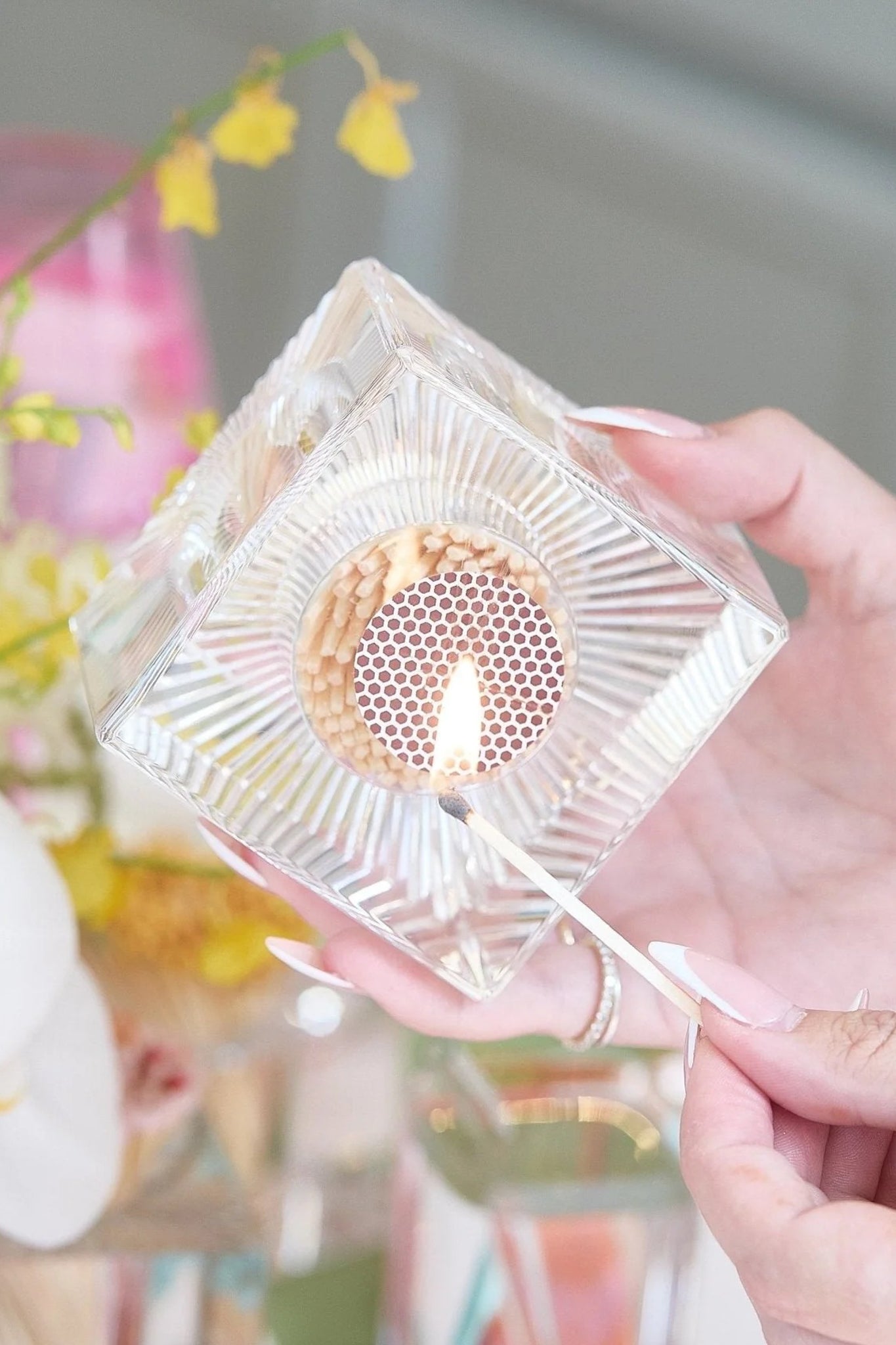 This square acrylic match holder is a sleek little firestarter with a modern twist—perfect for any stylish shelf or cozy corner. Its clear design makes your colorful matches pop, while the textured bottom doubles as a built-in striker for easy lighting. Compact and chic, it's ready to add a spark of elegance to your space!