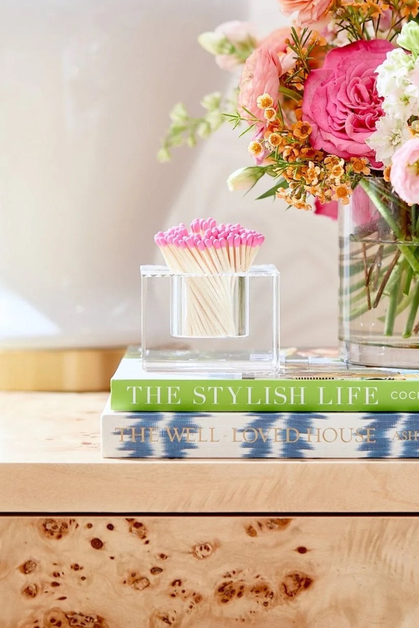 Acrylic Square Match Striker Set - Hot Pink Matches