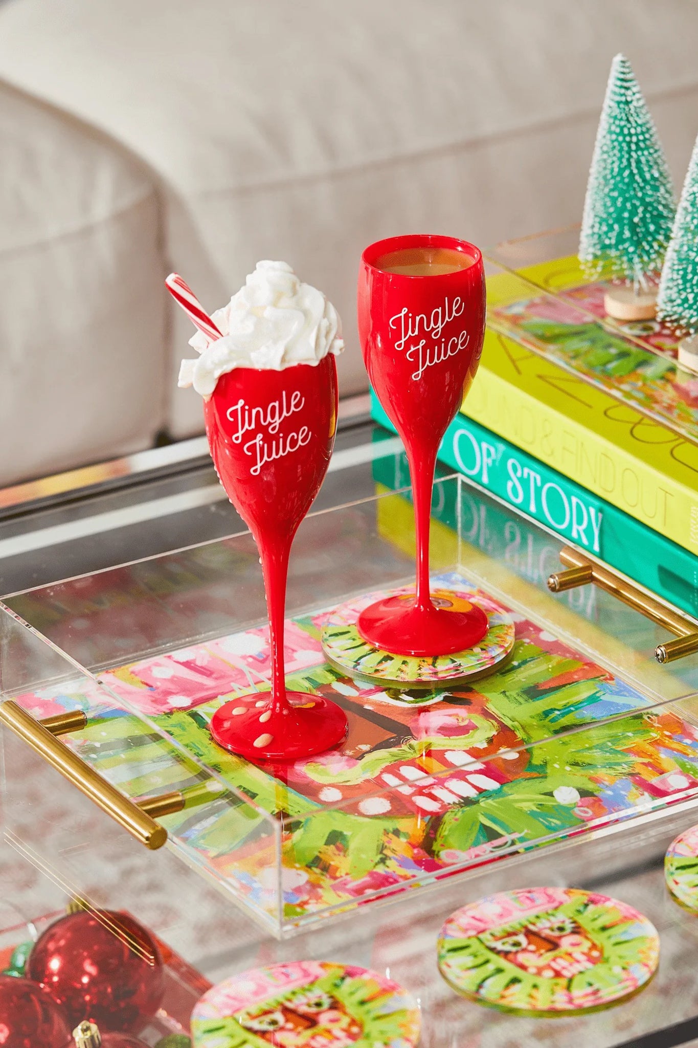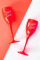 These red flutes are ready to spread some holiday spirit—one bubbly sip at a time! With their festive red tint and playful script, they're the perfect way to toast to holiday cheer. Grab one, fill it with your favorite festive drink, and let the jingle bells rock!
