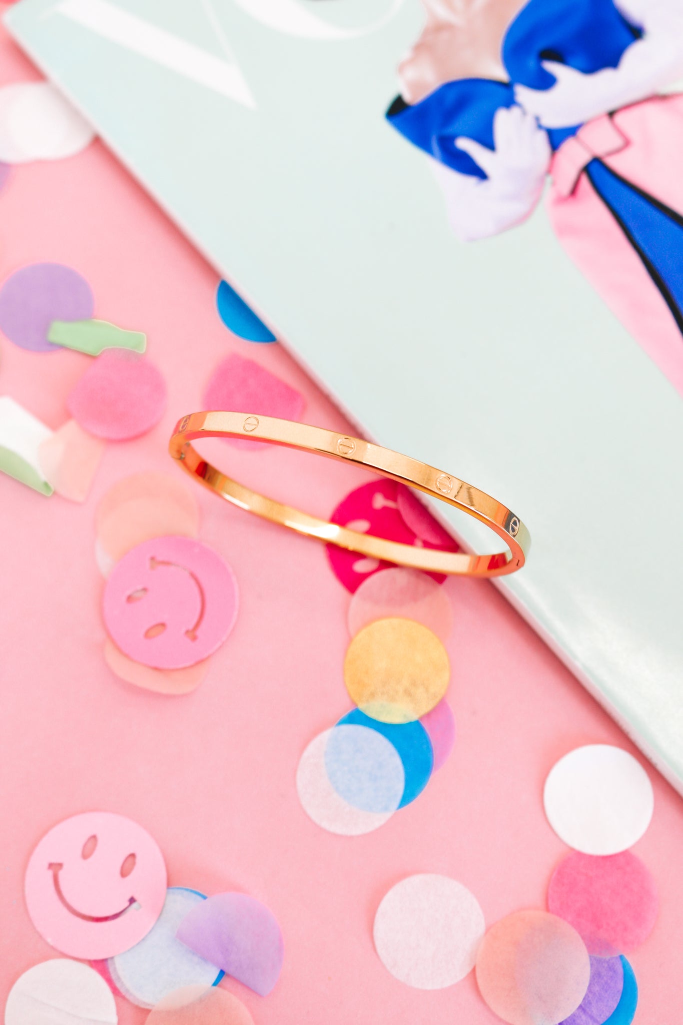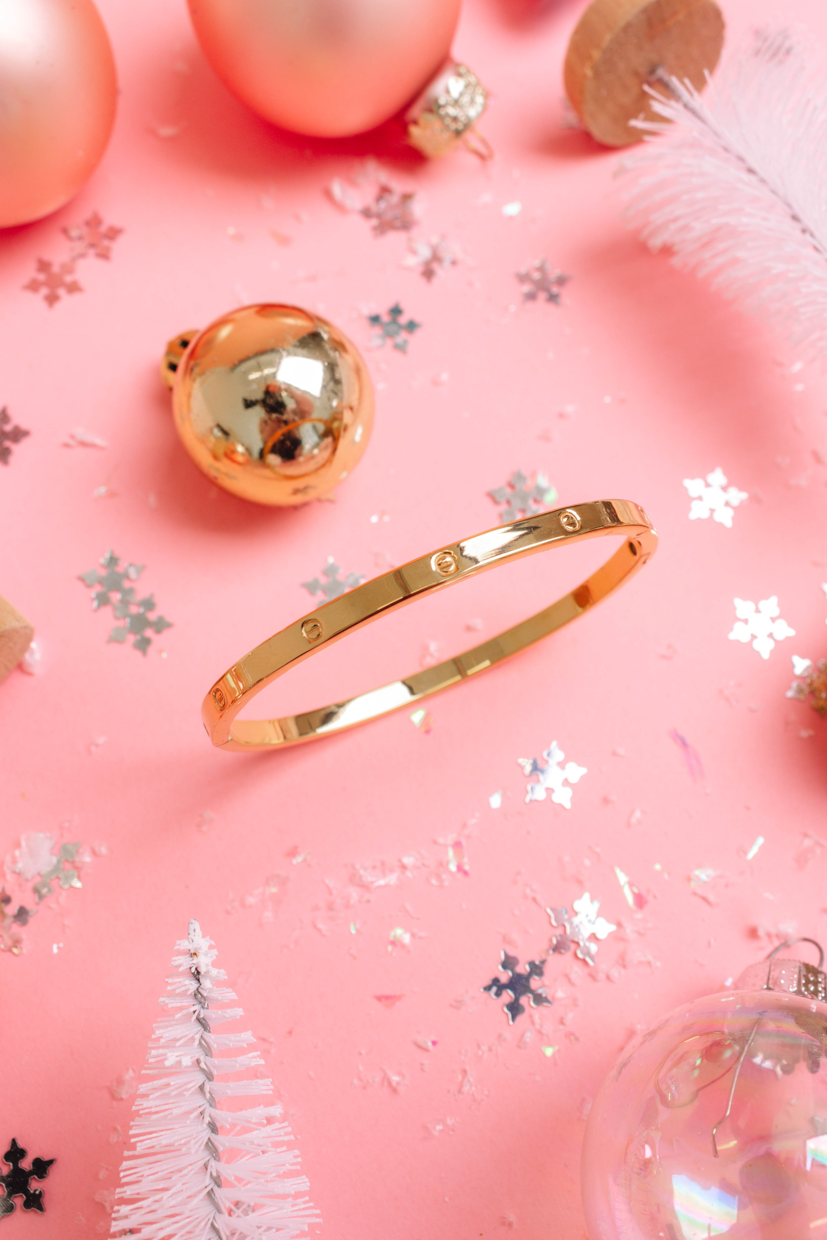 Sleek and sophisticated, this gold bracelet is your go-to for instant glam. It adds the perfect touch of luxe to your festive look.