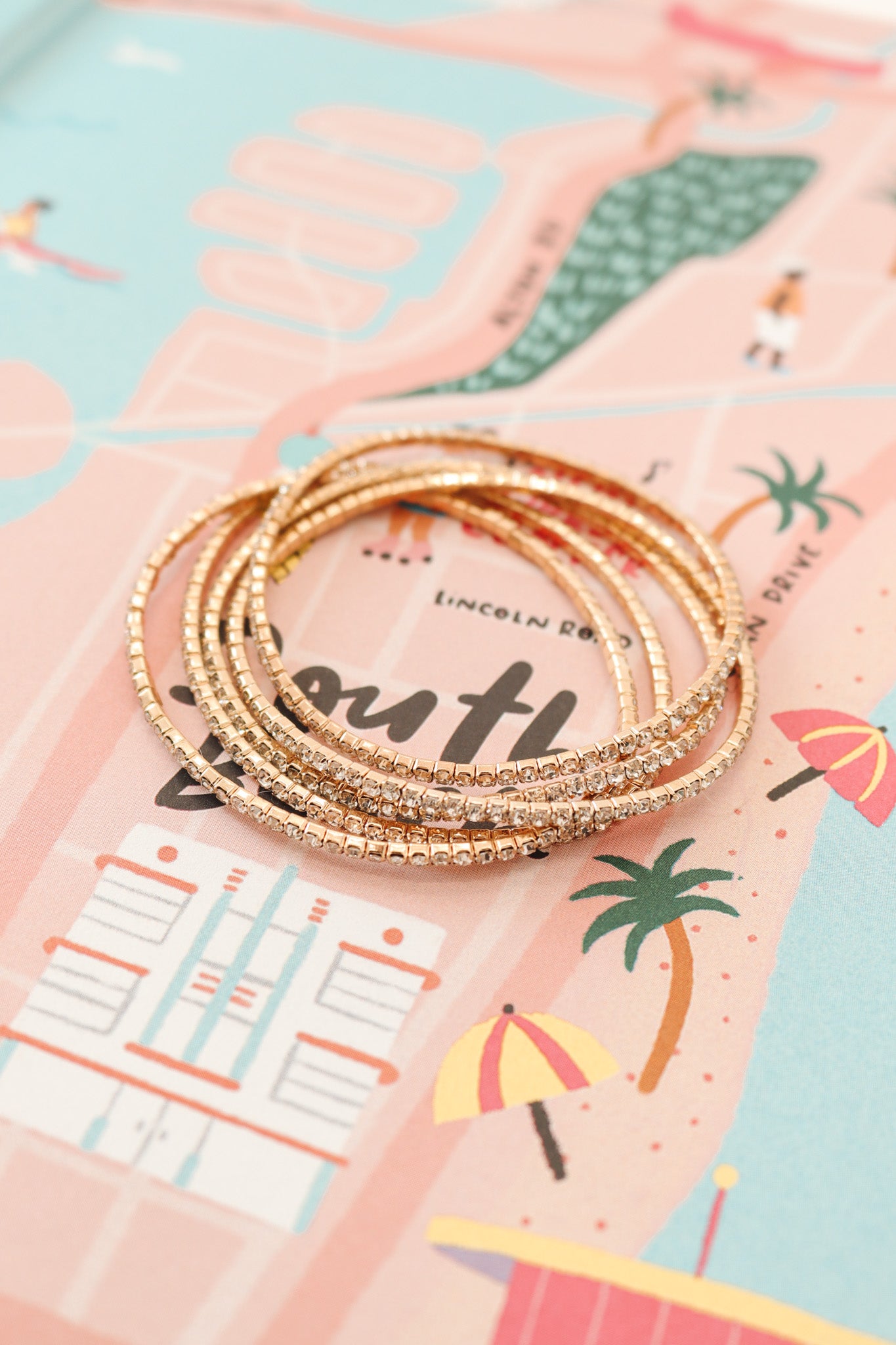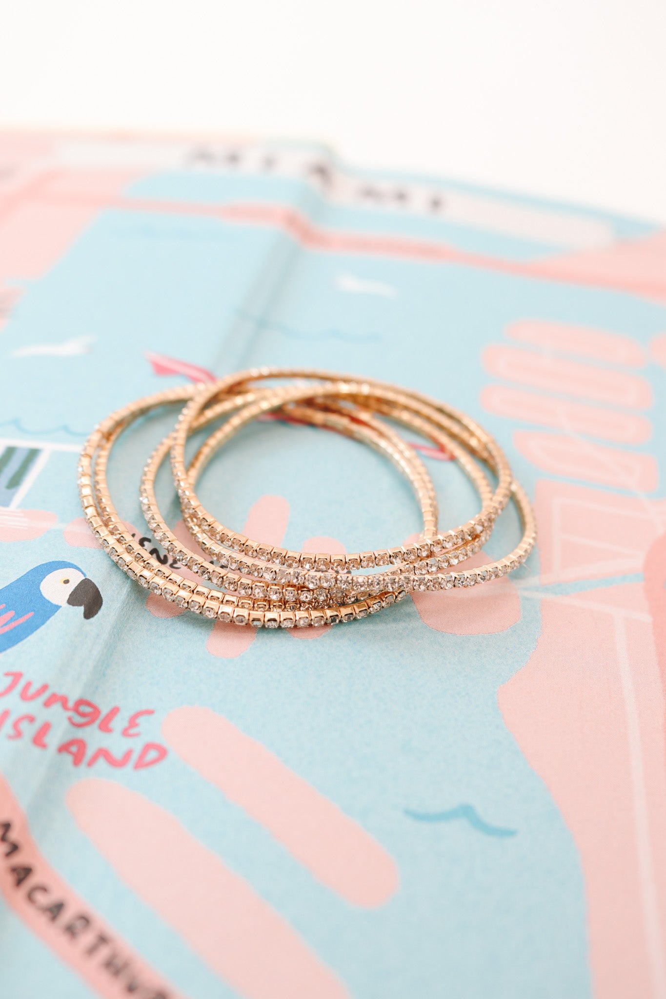 Stack them up or wear them solo—this set of five rhinestone gold bracelets is the ultimate mix-and-match accessory! With a perfect balance of shimmer and texture, they add just the right amount of golden glow to any outfit. Effortlessly stylish and endlessly versatile, these bracelets are your new go-to for layering in luxury!