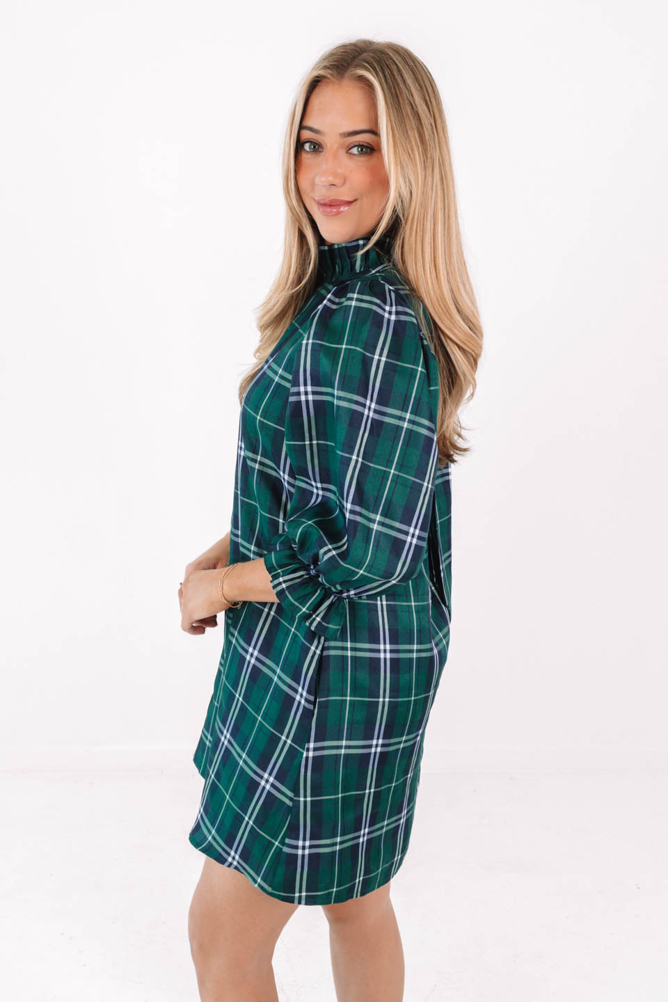 The Jordyn Long Sleeve Bow Dress - Green Plaid