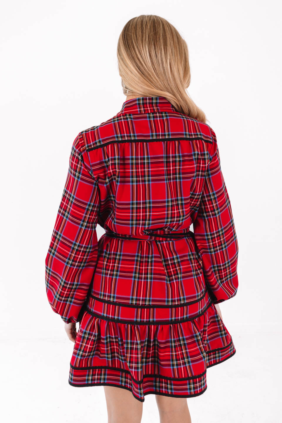 The Hollin Long Sleeve Tie Dress - Red Plaid