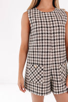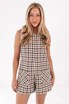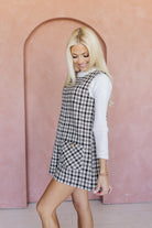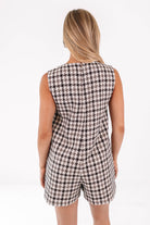 Effortless style meets seasonal charm! This romper features a brown & cream plaid, big front pockets, & gold button details for a polished yet relaxed look. Part of our sweater collection, it brings both fall charm & holiday-ready vibes. Style tip: layer a white turtleneck underneath for added warmth & a sleek seasonal touch—perfect for gatherings, festive outings, or casual weekends.