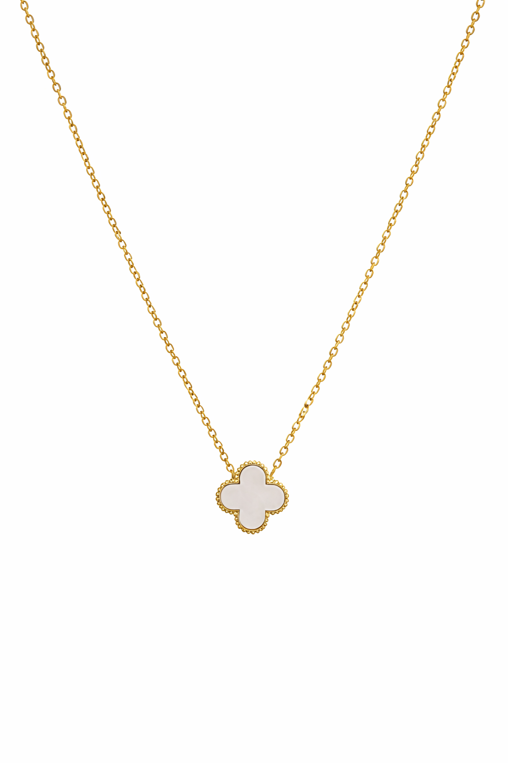 Delicate, dainty, and effortlessly chic — this clover pendant necklace is your new everyday favorite. The luminous center framed in gold adds a soft glow that catches the light beautifully. Perfect for layering or wearing solo, it’s a timeless touch of elegance you’ll never want to take off.