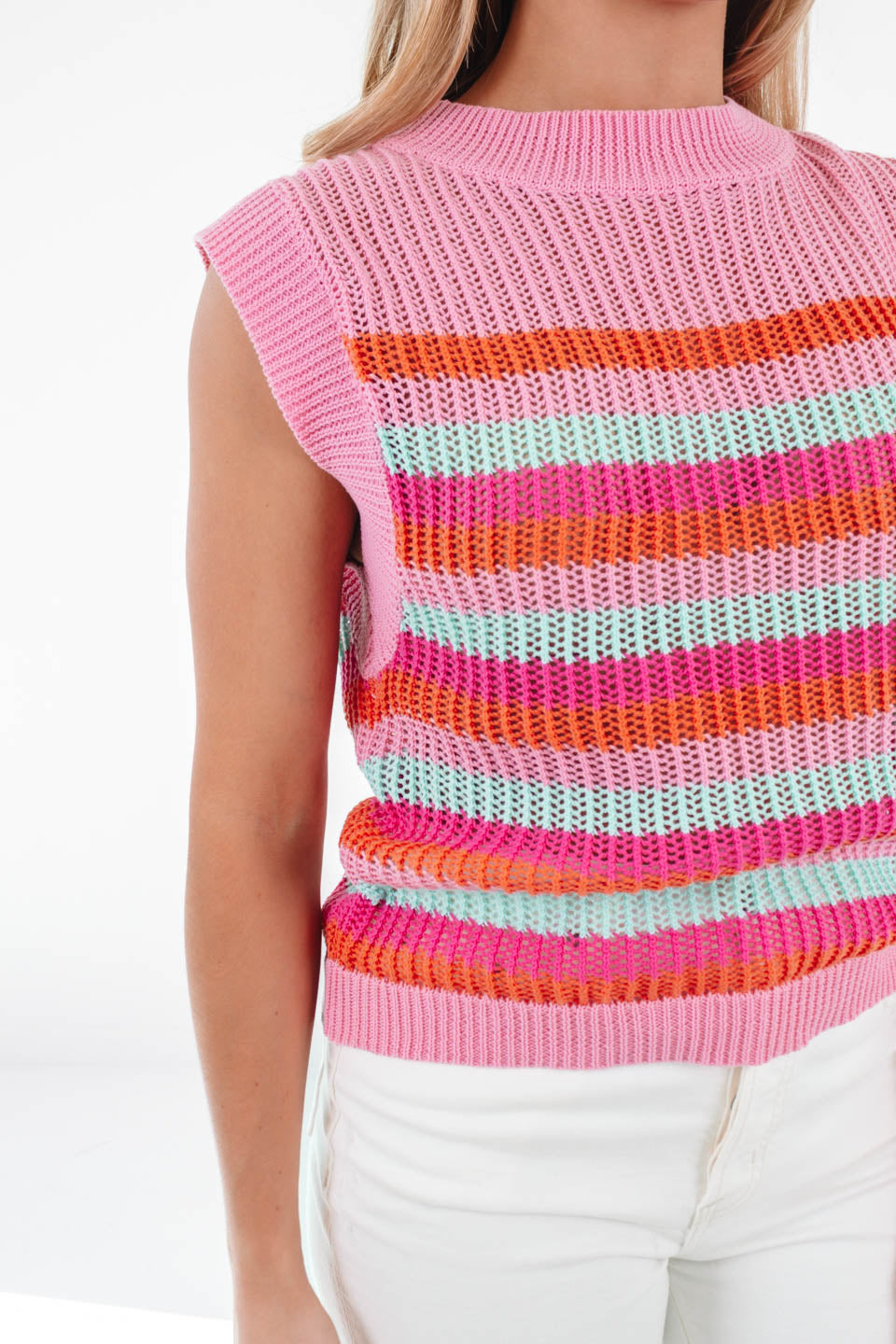 Candy Stripe Cropped Sweater - Pink