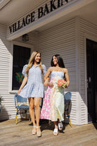 Sweet, stylish, and effortlessly polished, this patterned mini dress brings a fresh twist to a classic shirt dress. The puff sleeves and playful drop-waist skirt add just the right amount of charm and movement. Perfect for brunch, shopping days, or anytime you want to look cute without even trying.
