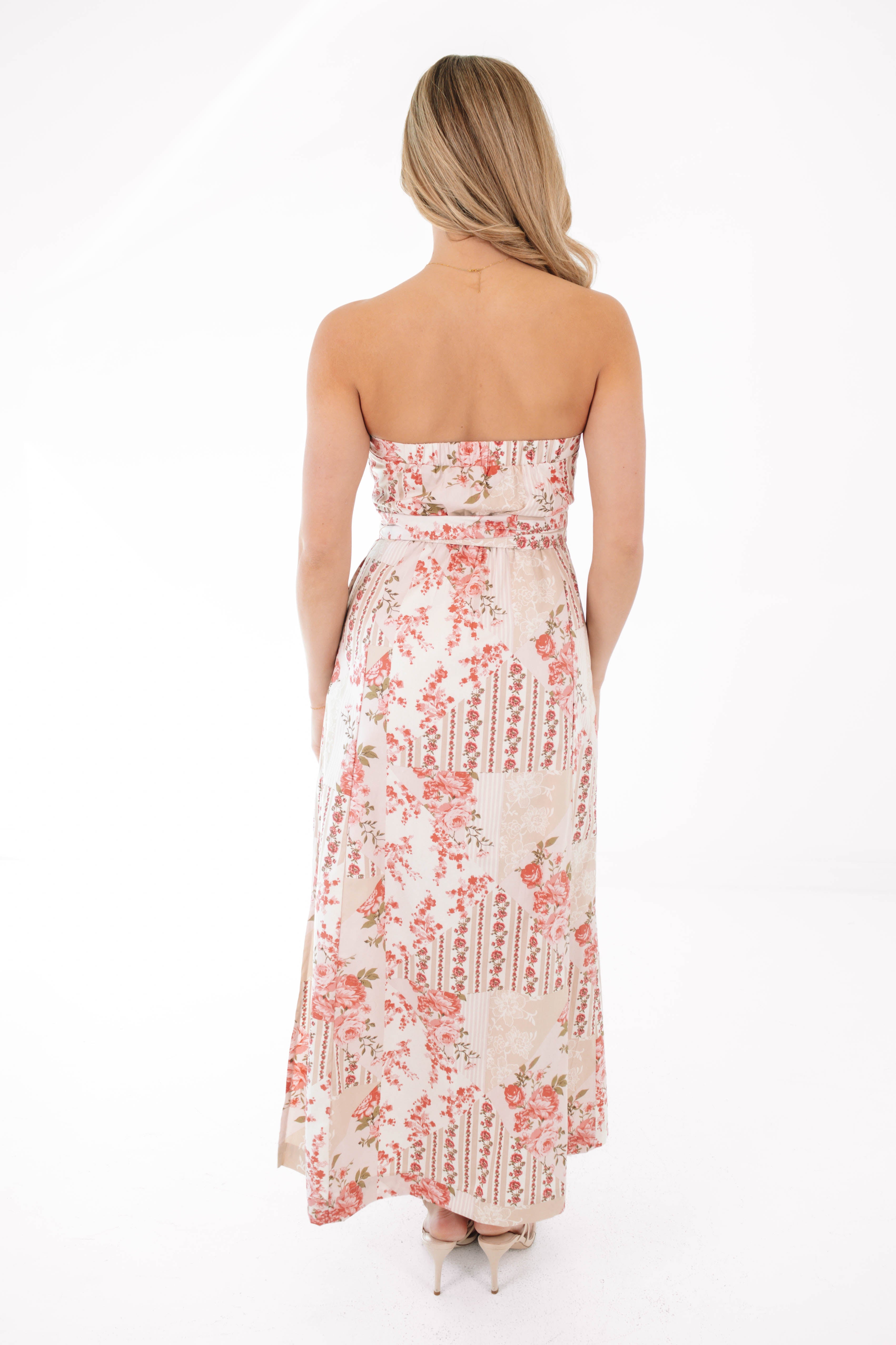 This strapless floral maxi is serving effortless romance with a soft, breezy silhouette and vintage-inspired print. The belted waist cinches you in just right while keeping things comfy and carefree. Just add sandals and sunshine and you’re instantly ready for wherever the day takes you.