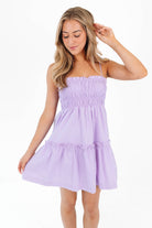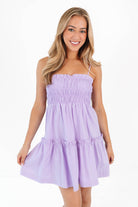 This lavender mini dress is the ultimate warm-weather vibe—breezy, flirty, and effortlessly cute. The stretchy smocked top hugs just right, while the ruffled hem brings the perfect touch of playful charm. It’s sunshine in dress form, ready for your next picnic or patio brunch!
