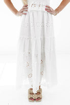 Flowy, floaty, and full of charm, this tiered eyelet skirt brings all the twirl-worthy vibes! The breezy silhouette moves beautifully with every step, giving you that easy, graceful feel. Dress it up with heels or keep it casual with sandals for a look that’s equal parts sweet and stunning.