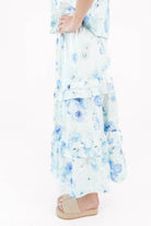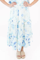 This charming midi skirt features a fresh white base adorned with a delicate blue floral print, bringing a fresh, romantic feel to your spring wardrobe. With its flattering length & easy, flowy silhouette, it’s both timeless & versatile—perfect for pairing with our Blakely Button Up Top for brunch dates, weekend outings, or sunny strolls.