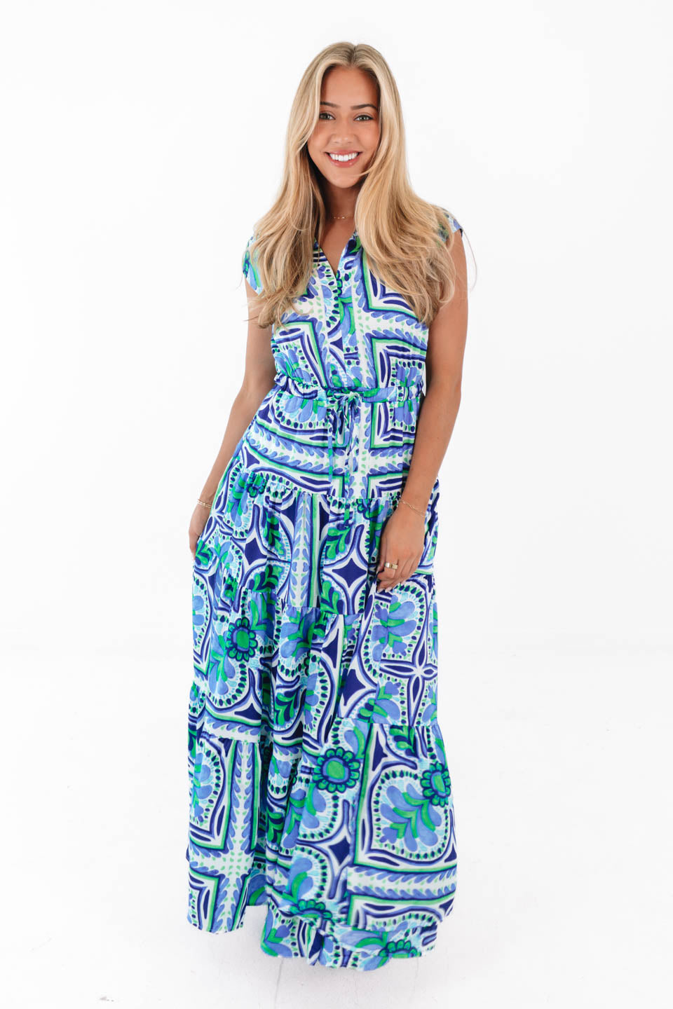 The Zanna Long Sleeve Tie Dress - Green Plaid