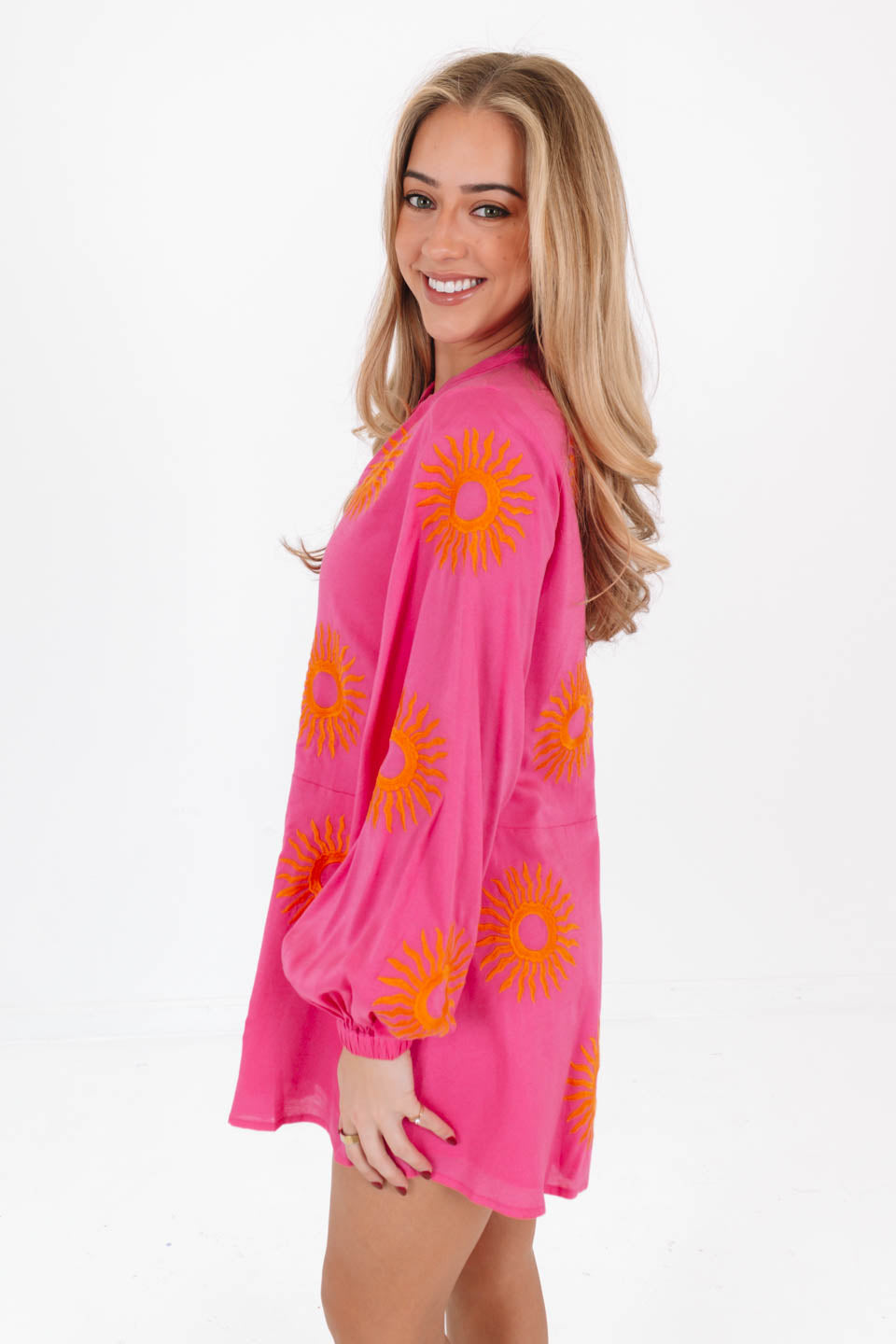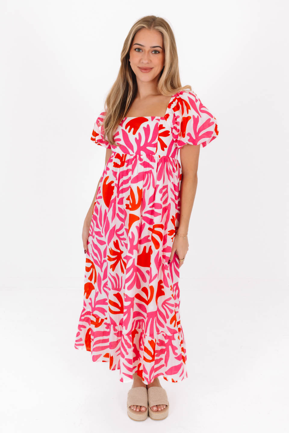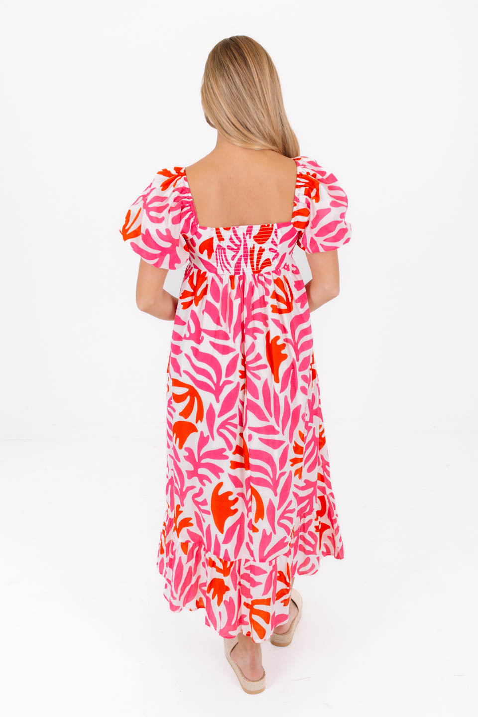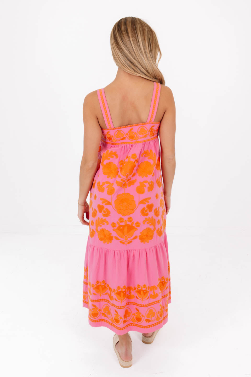 The Mara Ric Rac Tie Strap Midi Dress - Hot Pink