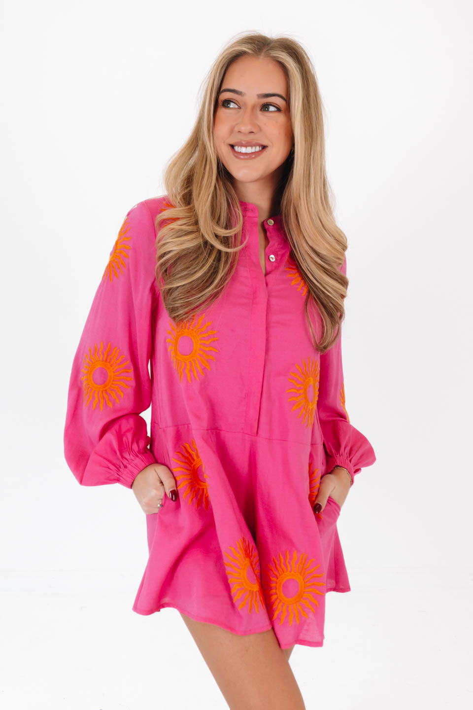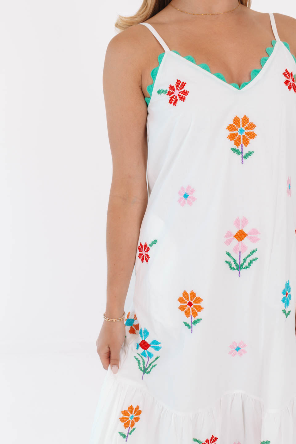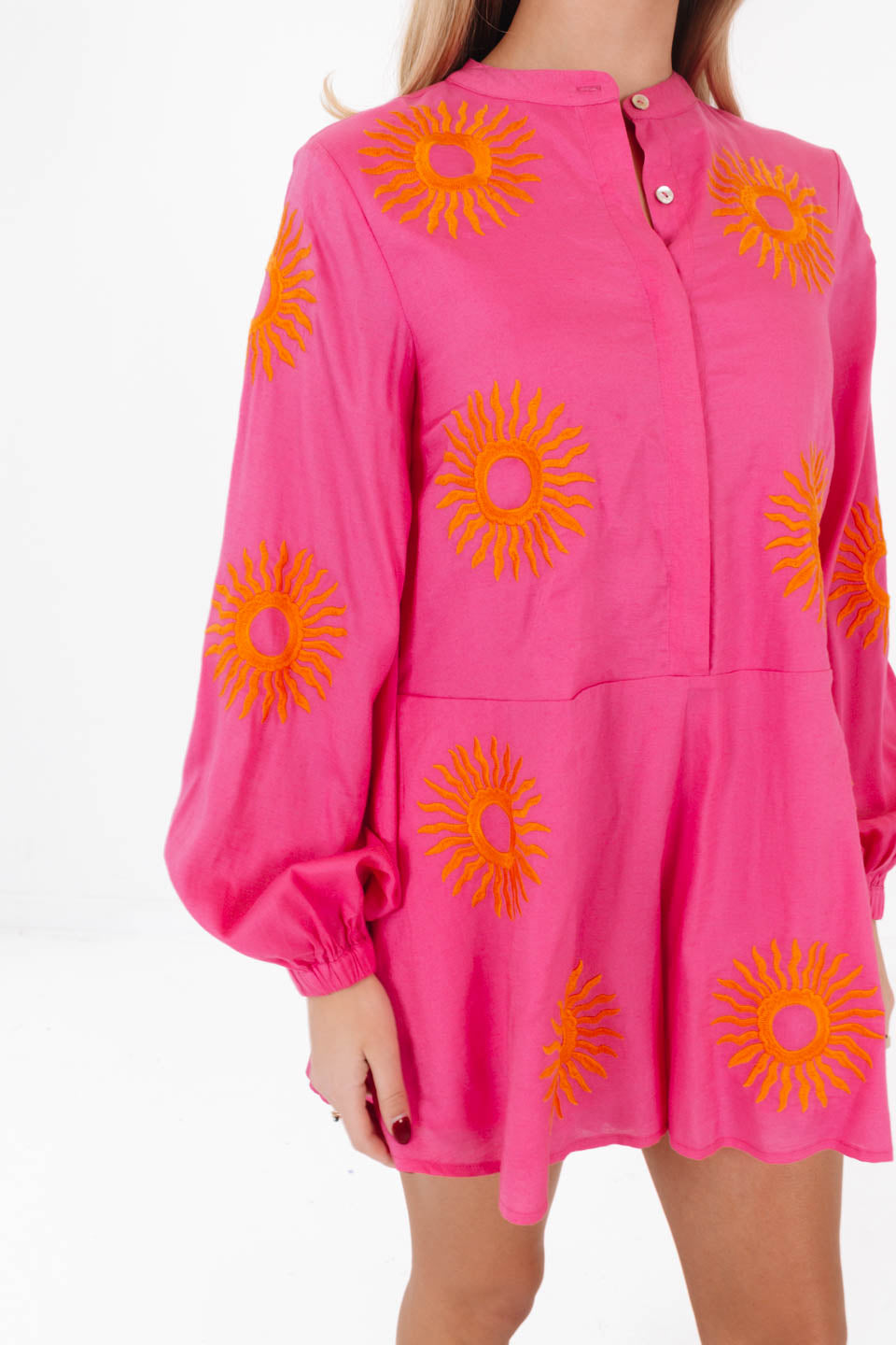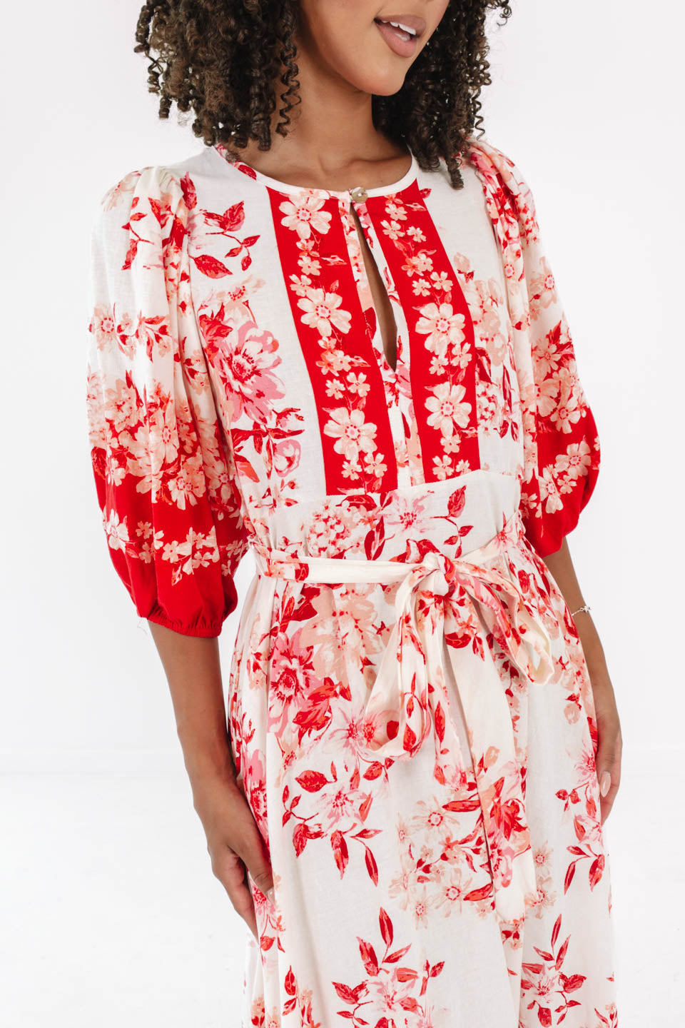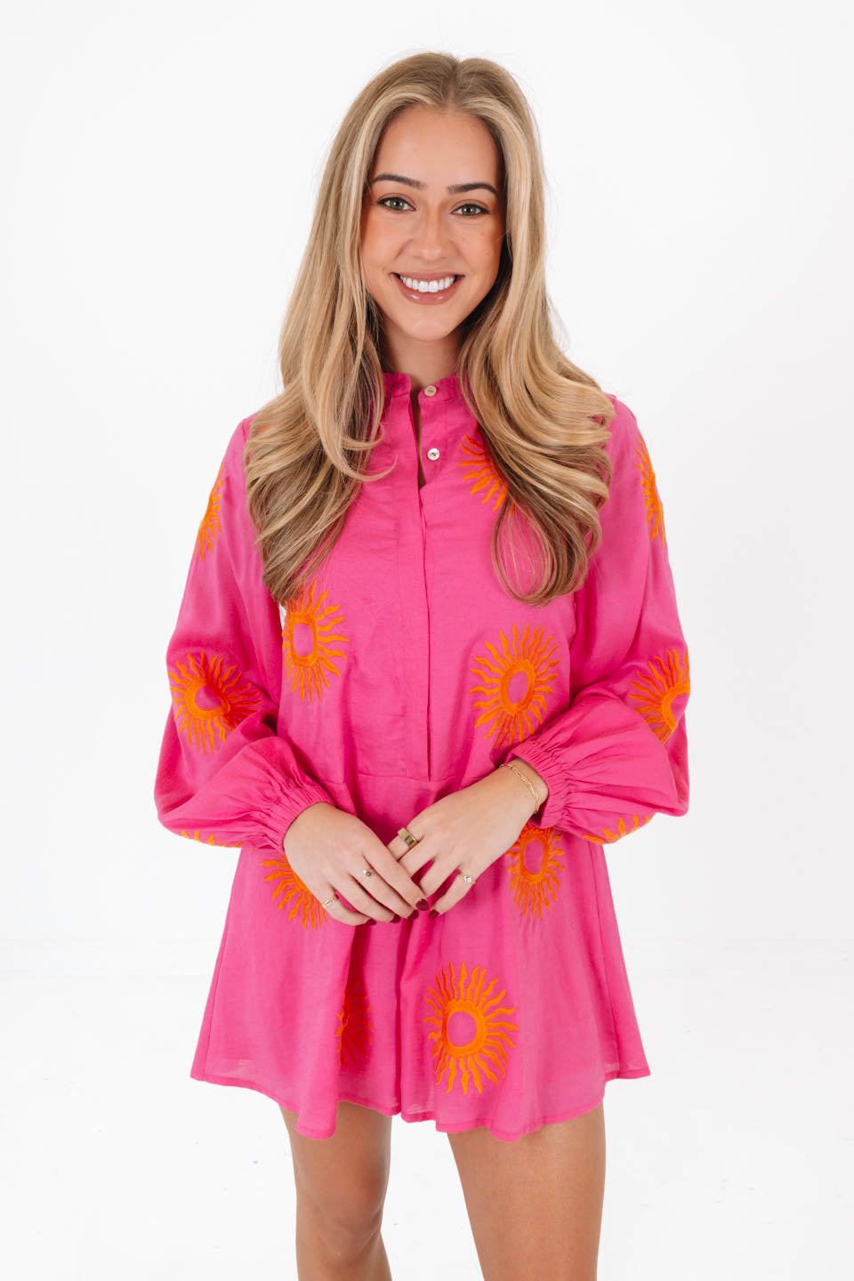 The Mara Ric Rac Tie Strap Midi Dress - Hot Pink