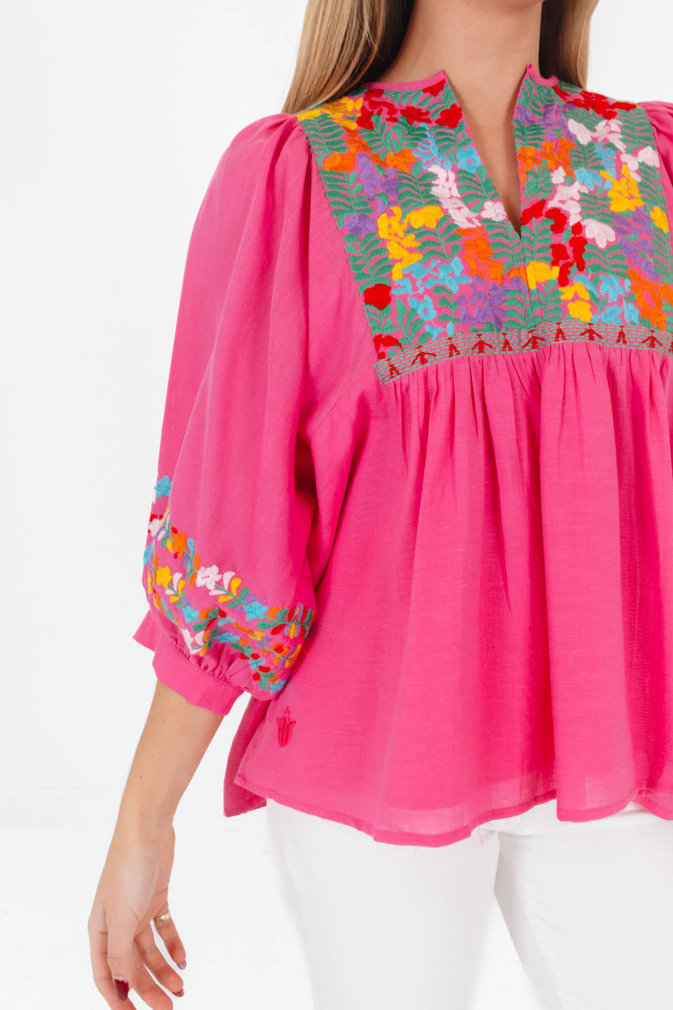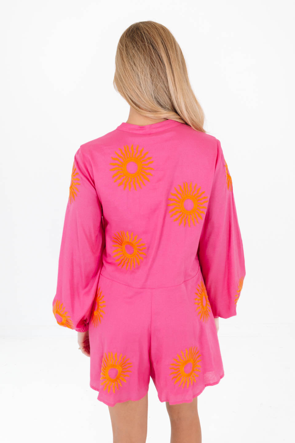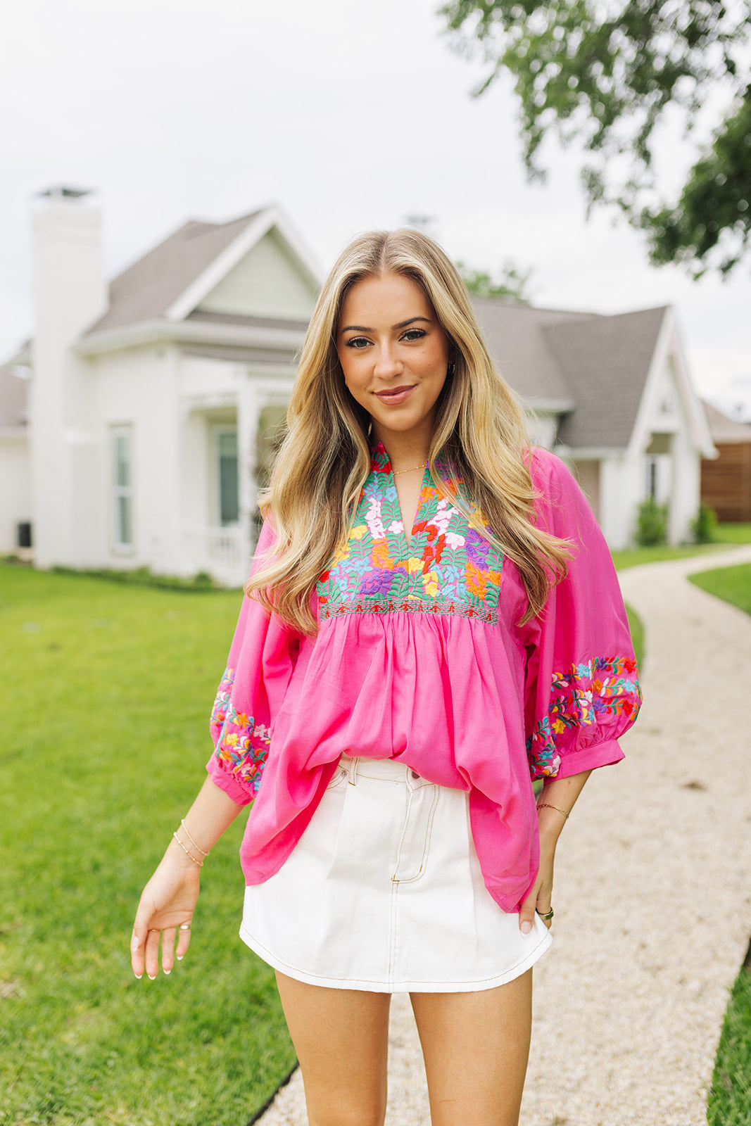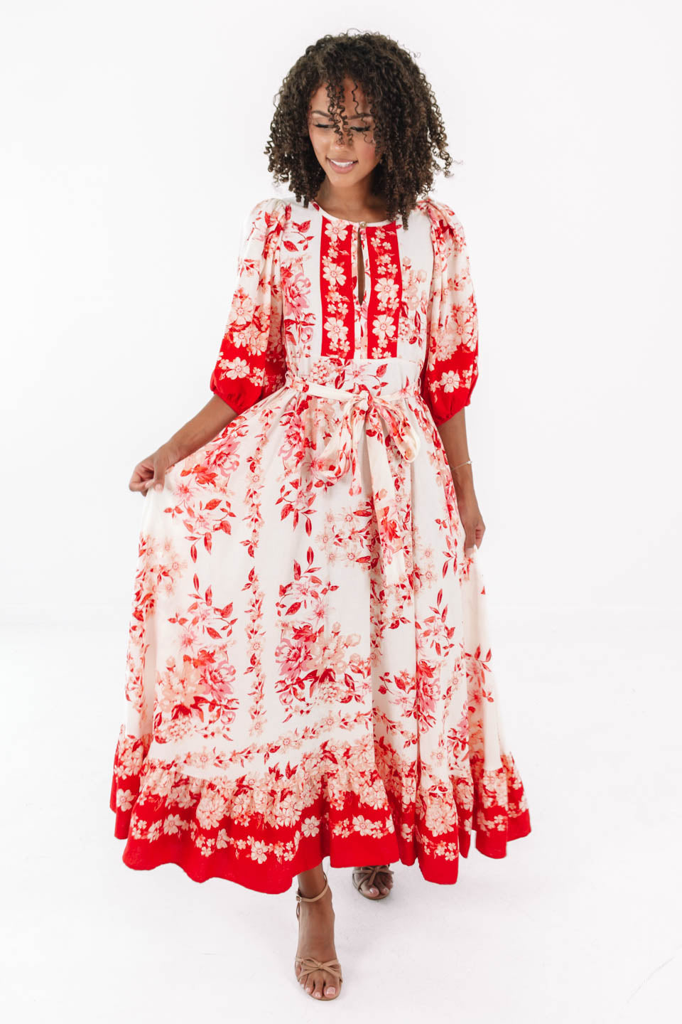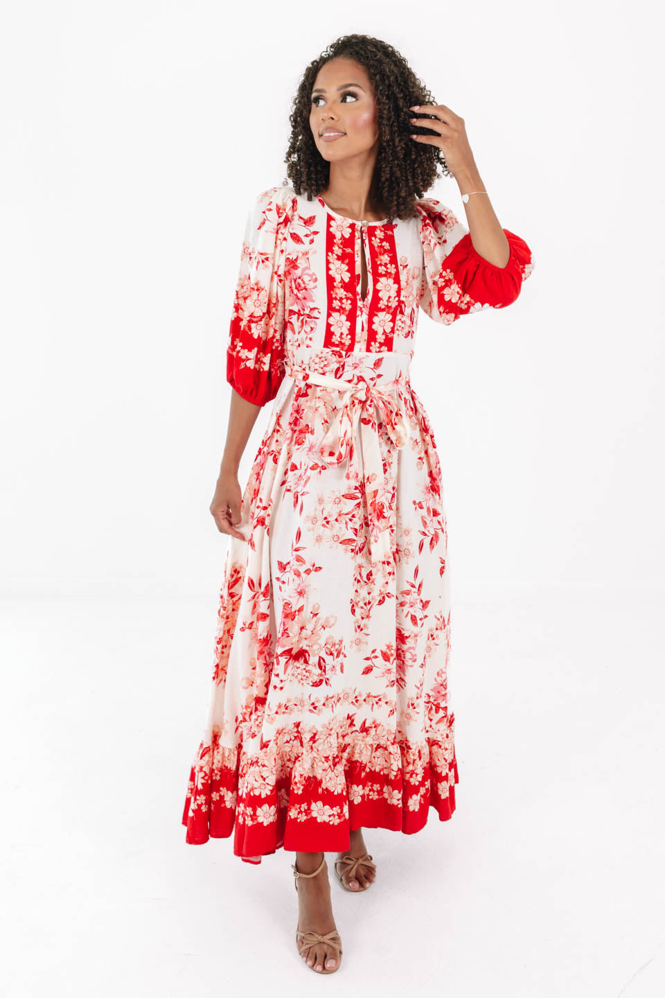 The Mara Ric Rac Tie Strap Midi Dress - Hot Pink