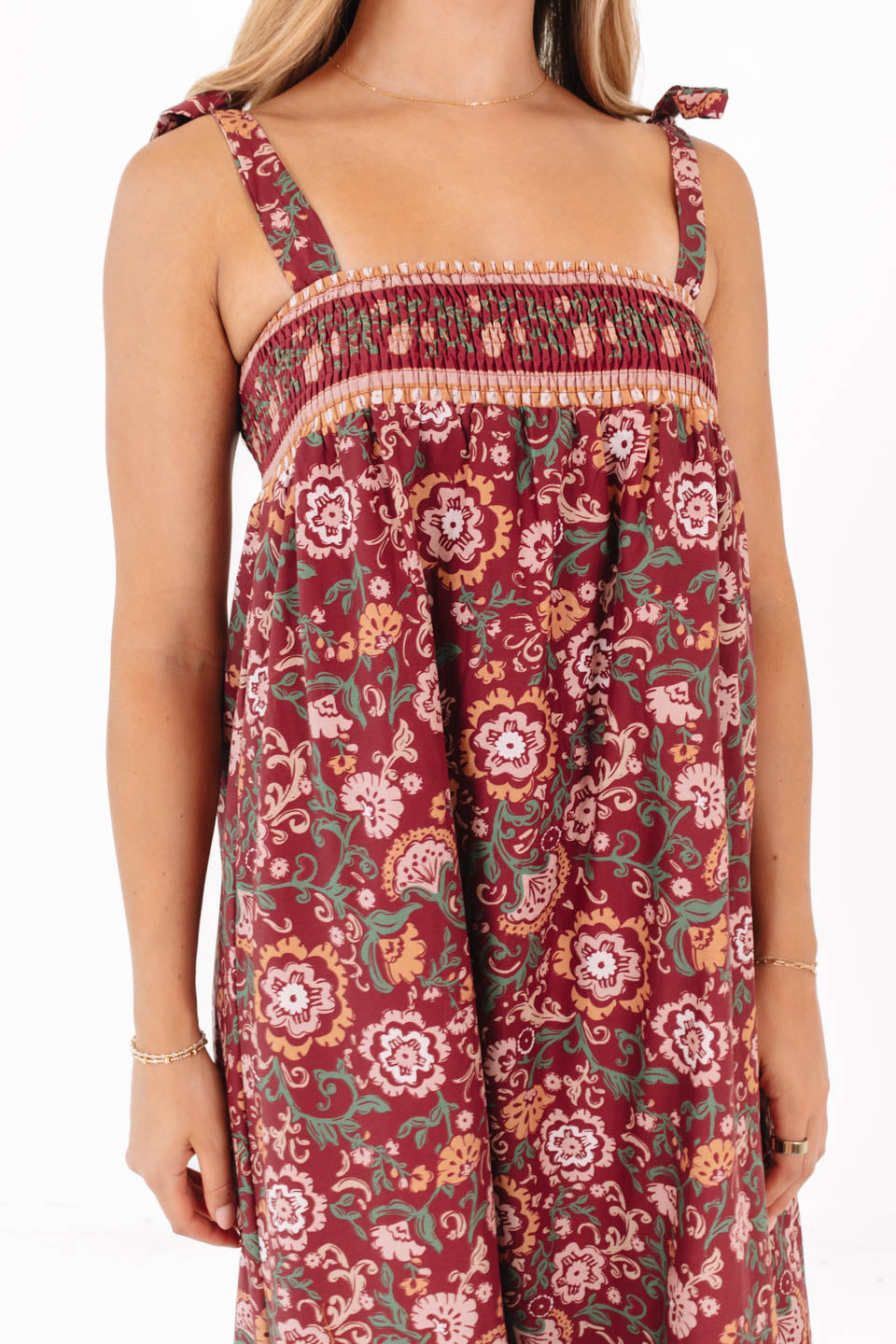 This flowy floral midi dress is made for twirling through sunny days and breezy evenings. With its smocked top, tie straps, and boho-inspired print, it’s equal parts comfy and chic. Just add sandals or wedges, and you’ve got the ultimate effortless outfit!