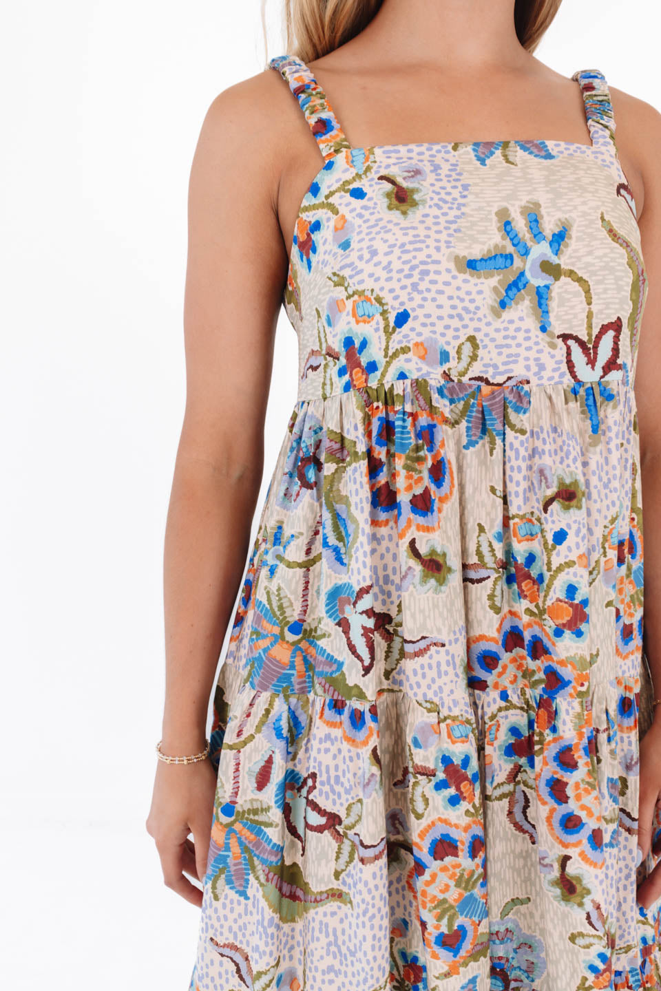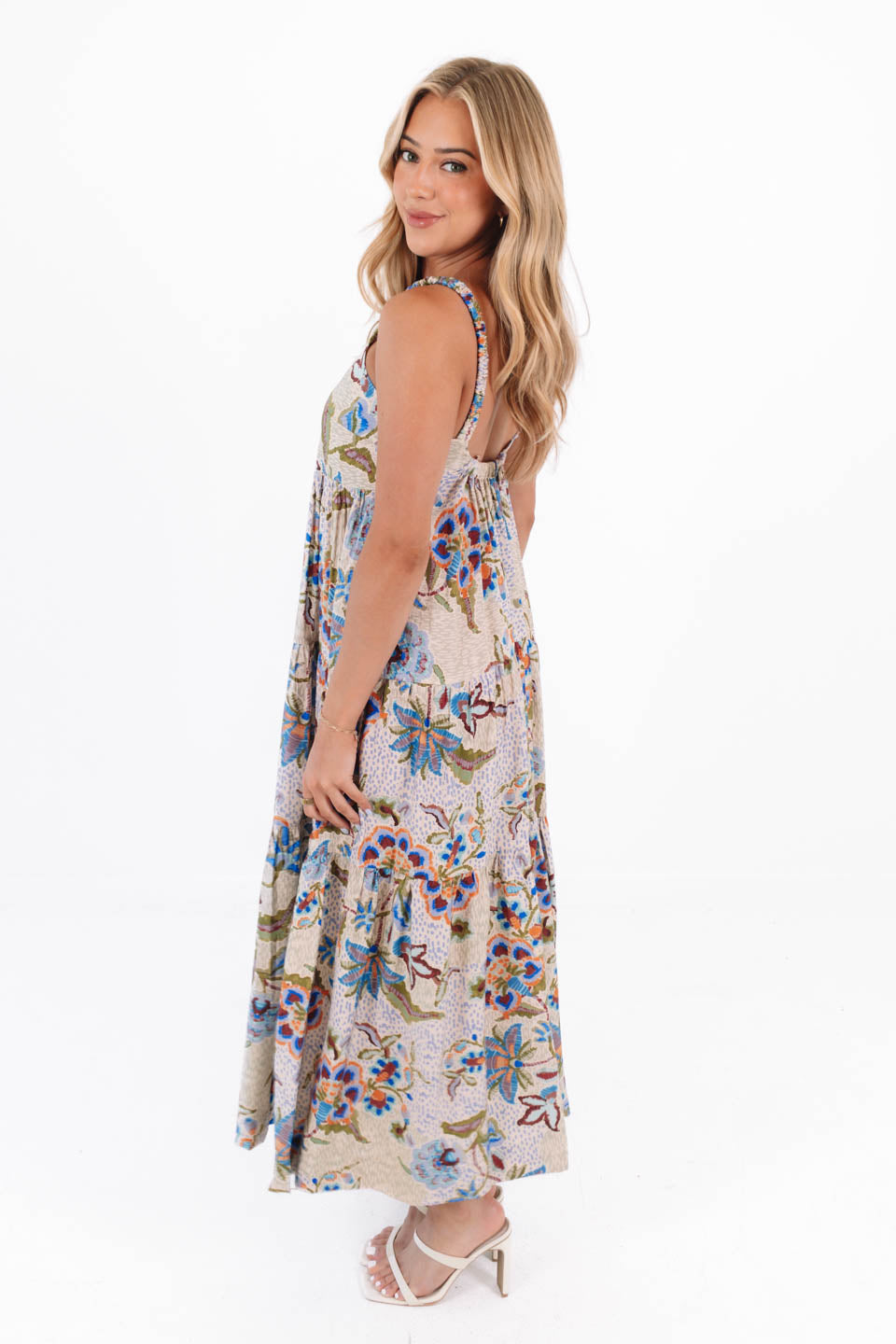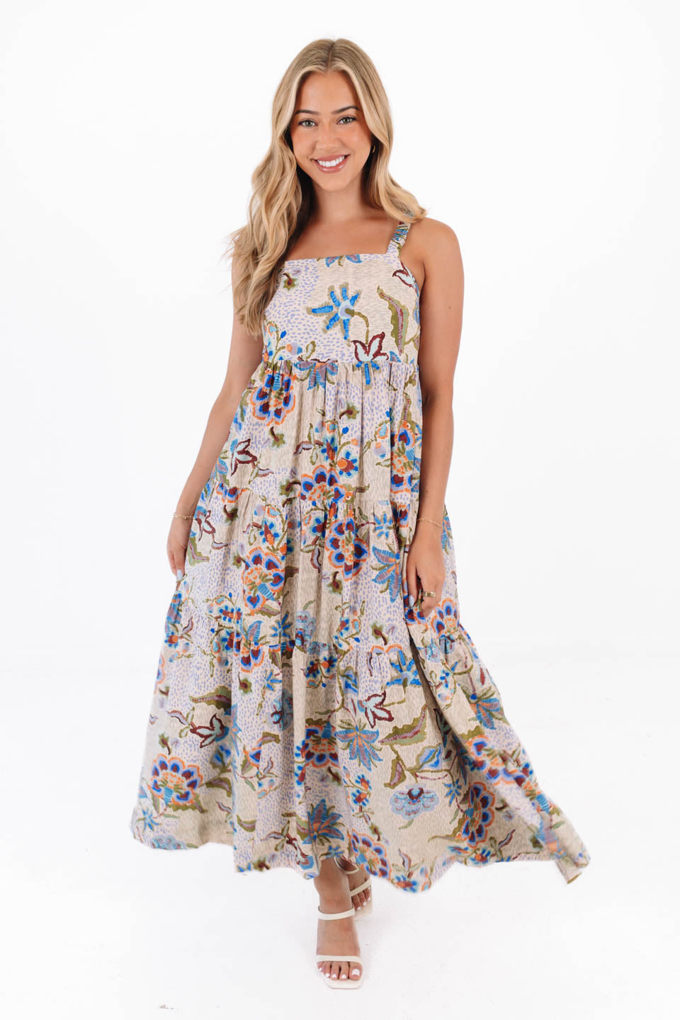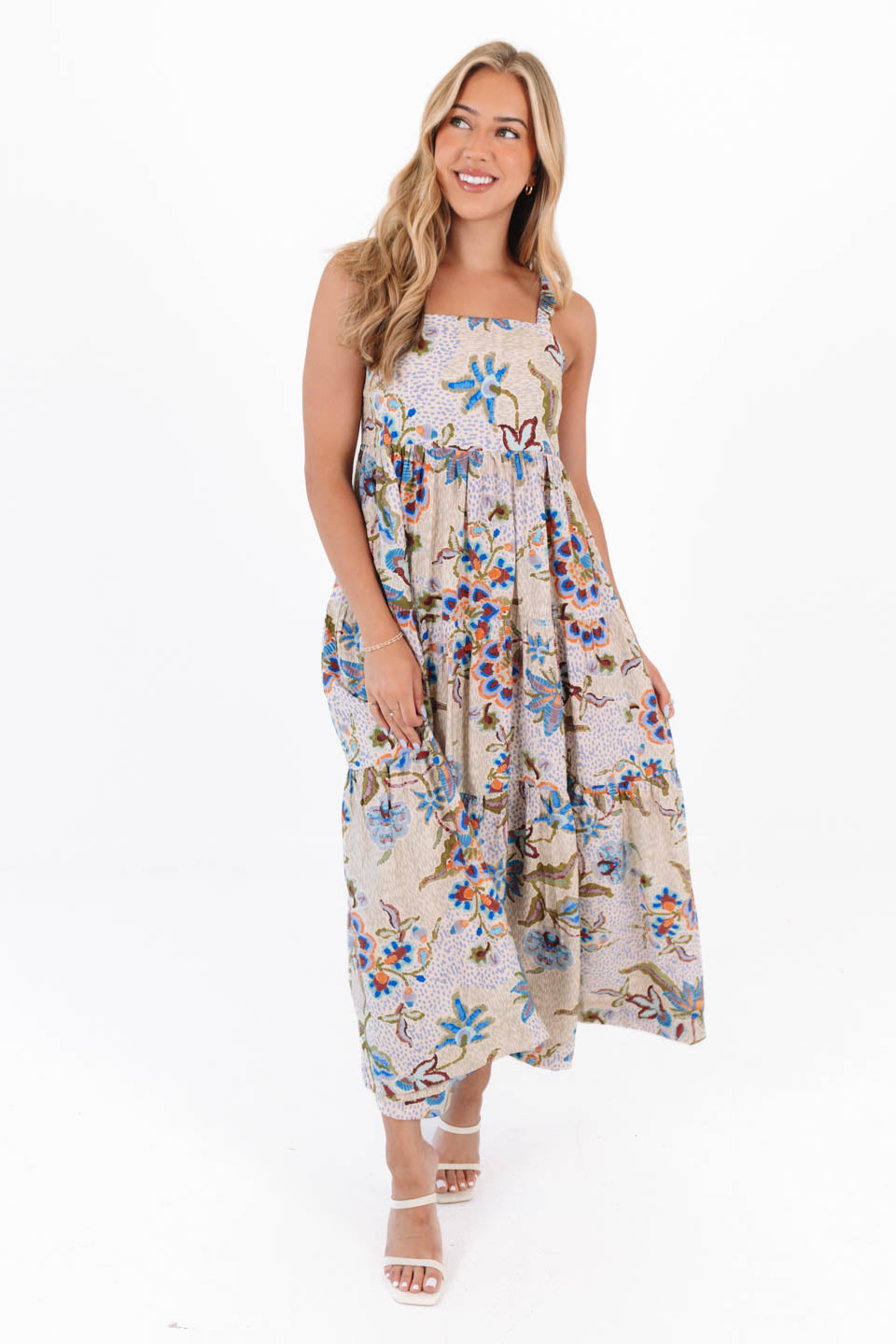 This dress is basically a summer party wrapped in boho magic! With its flowy tiers and vibrant floral print, it’s ready to twirl through beach houses and breezy weekend brunches. Slip it on and you're one step closer to main-character energy.