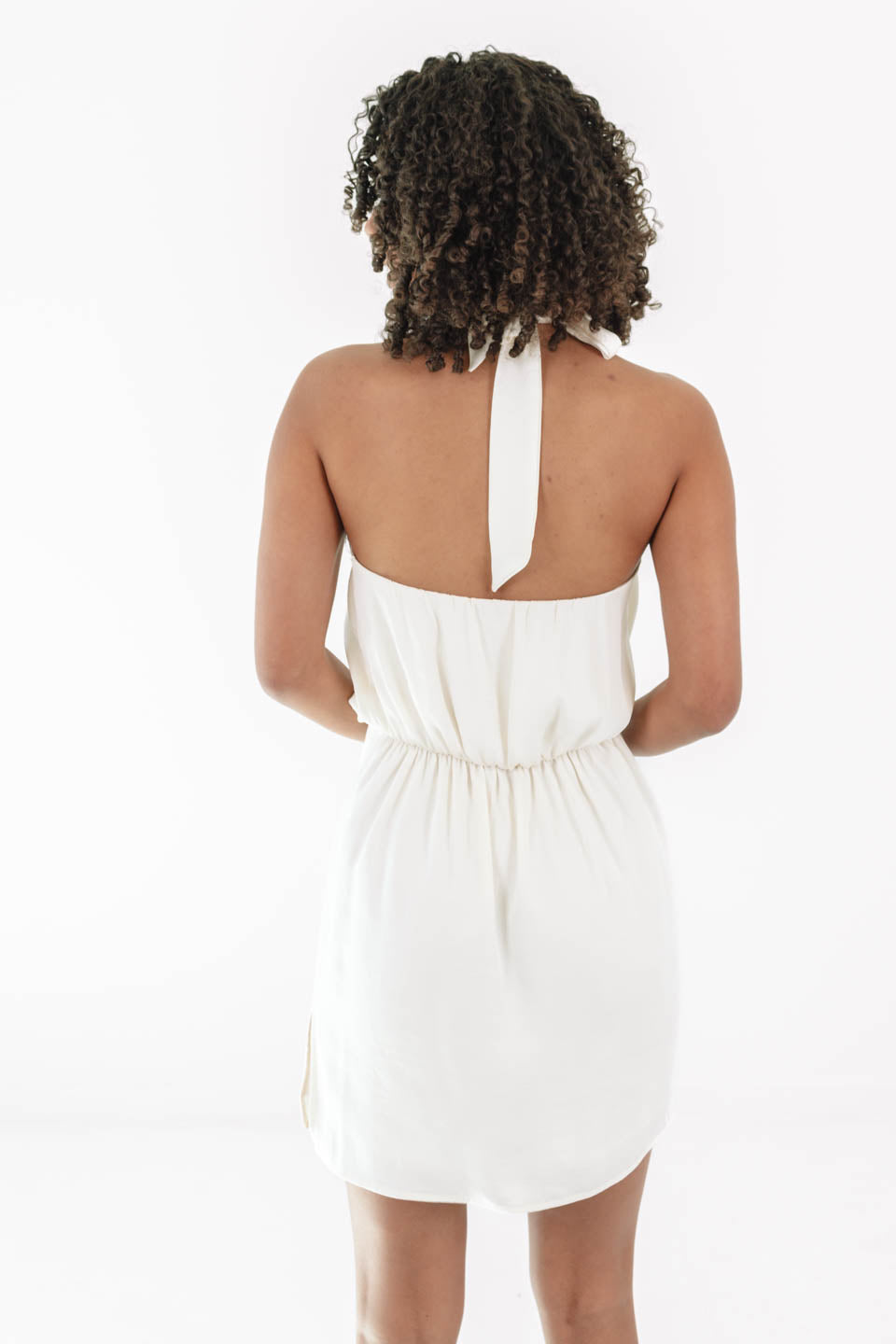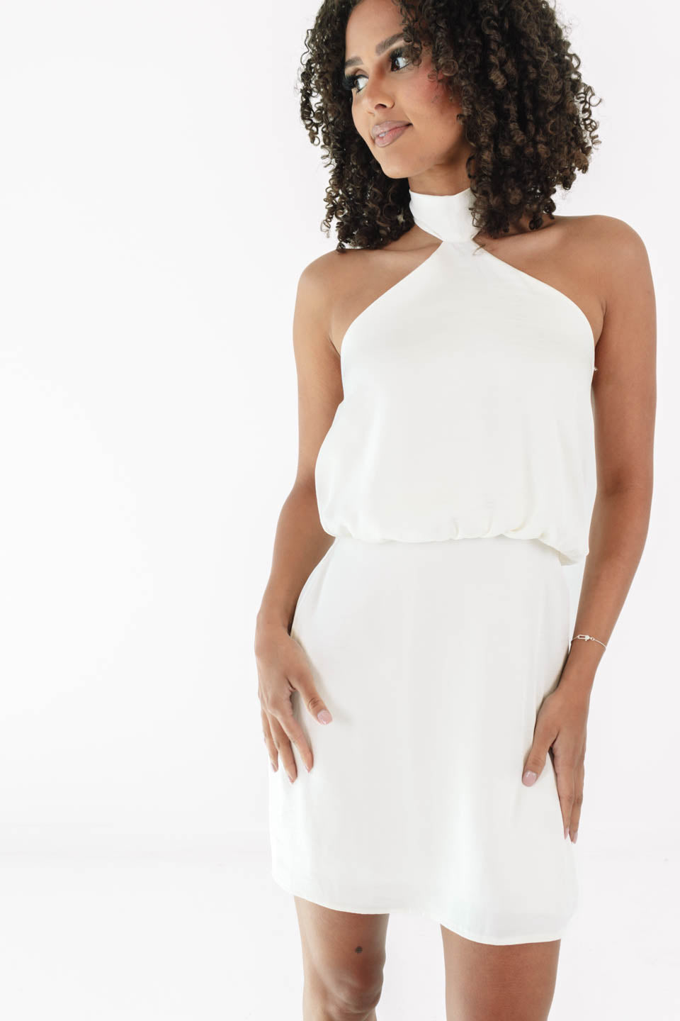 Turn heads and steal hearts in this white halter dress that’s all sass and sparkle. With its sleek silhouette and flirty neckline, it’s your go-to for girls’ night or that unexpected rooftop invite. It’s bold, bright, and totally built for the spotlight!