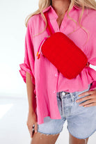 Elevate your style game with this eye-catching red quilted belt bag, the perfect blend of fashion and function! Its bold color and chic quilted design make a statement, while the hands-free convenience keeps you ready for any adventure. Whether you're running errands or hitting the town, this belt bag adds a pop of flair to any outfit!