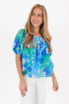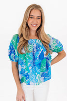 This blue top is perfect for spring, featuring a lively floral print in blue, green, and teal. The square neckline and puff sleeves add a sweet, romantic touch, while the flowy body ensures a breezy, comfortable fit. Ideal for warm days, this top brings a cheerful, feminine vibe to any spring outfit!