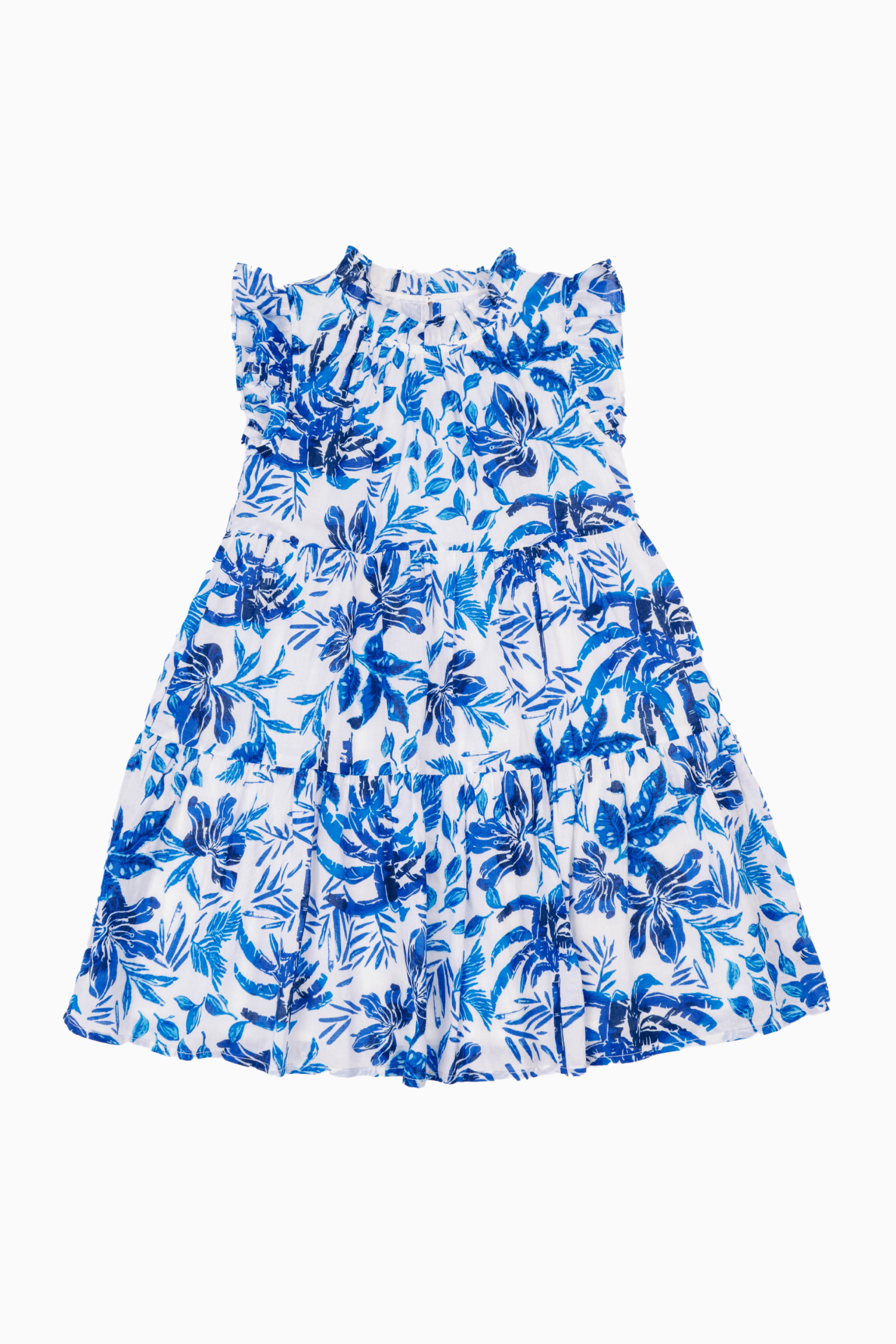 This cheerful white tween dress features a vibrant tropical print in blue is perfect for adding a pop of color to any occasion. The flutter sleeves and tiered body create a light, airy feel, offering both comfort and charm. Sweet and playful, it’s an ideal choice for a fun day out or a special event!
