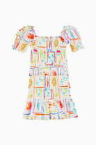 This adorable tween dress features sweet puff sleeves and a ruched body for a comfy, cute fit. The multi colored print adds a cheerful touch, making it perfect for fun outings or just a day of play. Stylish and comfortable, it's a fun addition to your little one's wardrobe!