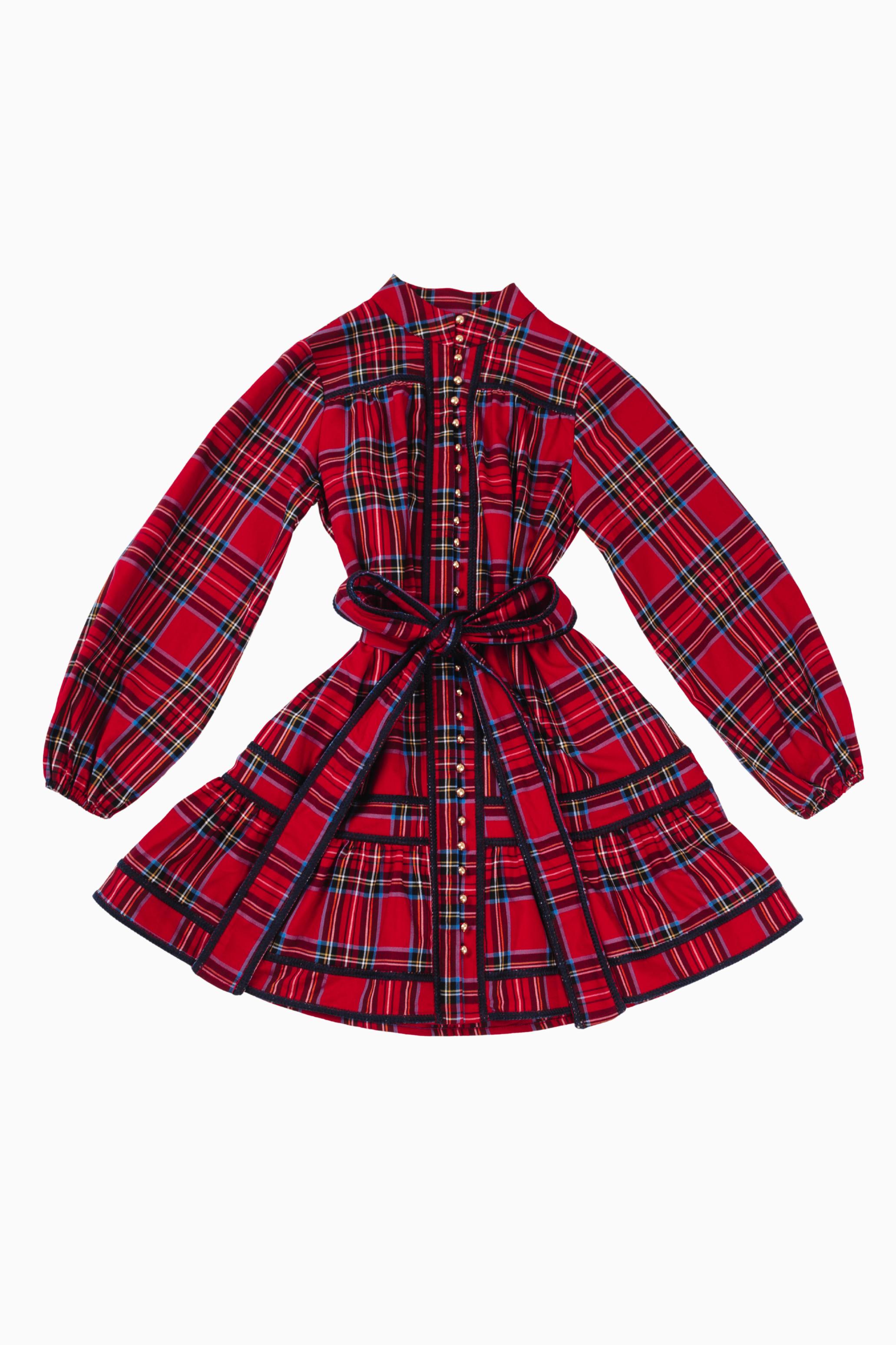 The Hollin Long Sleeve Tie Tween Dress - Red Plaid