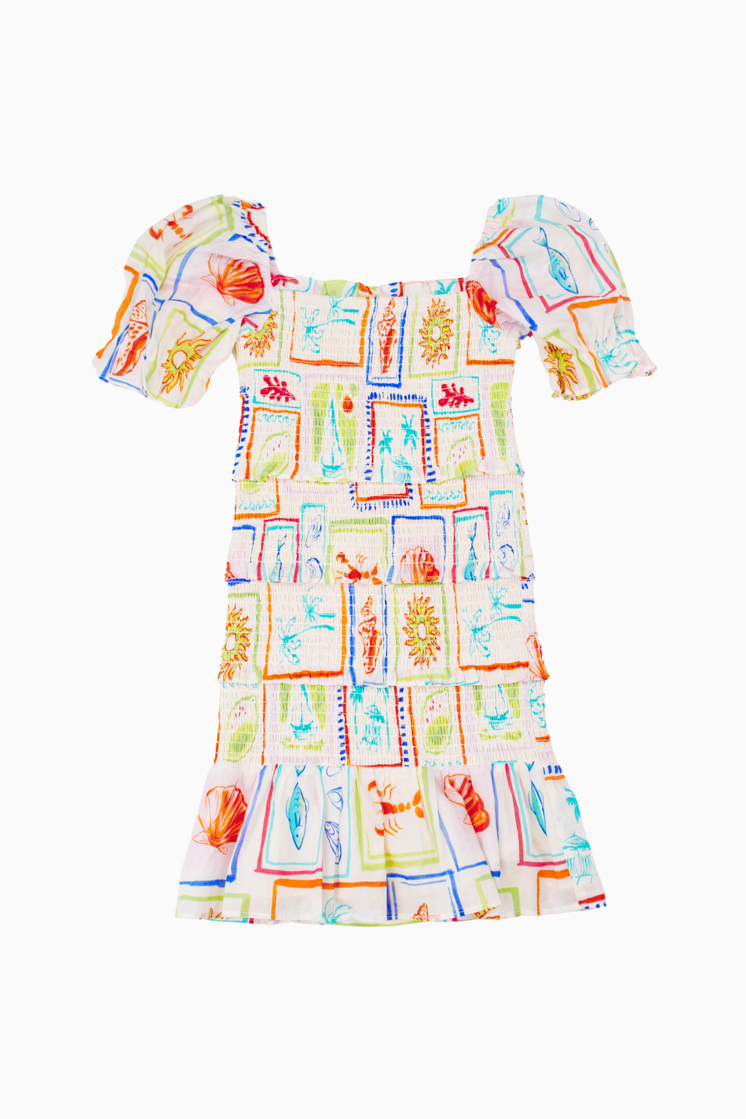 The Hayden Puff Sleeve Tween Dress - White/Blue